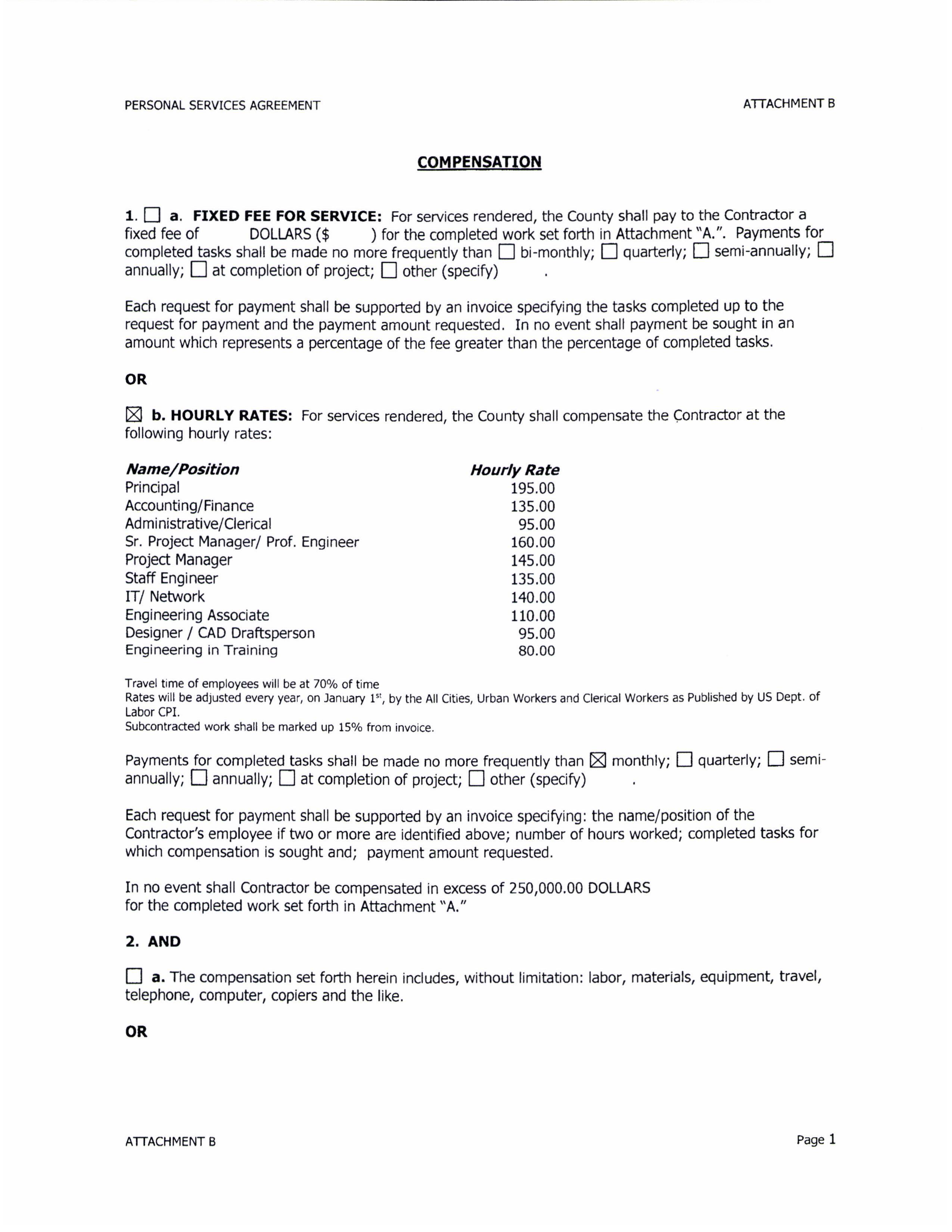 3. Invoices. The Subrecipient shall submit invoices using the County’s form, or such other form as approved by the County. Consideration for services shall be payable upon receipt of properly completed invoices which shall be submitted to the County Contract Representative within this Agreement, by the Subrecipient, not more often than monthly. The Subrecipient shall submit invoices on or before the 15th of the month, regardless of what day of the week the 15th falls on, following the month of services were performed. The invoices shall describe and document to the County’s satisfaction a description of the work performed, activities accomplished, the progress of the Scope of Work, and fees. The final invoice must be received by the County no later than the 15 calendar days following the end of this Agreement. The County will not process any payments for invoices received after the 15th of the month following the end of this Agreement, unless prior approval from the County has been given.