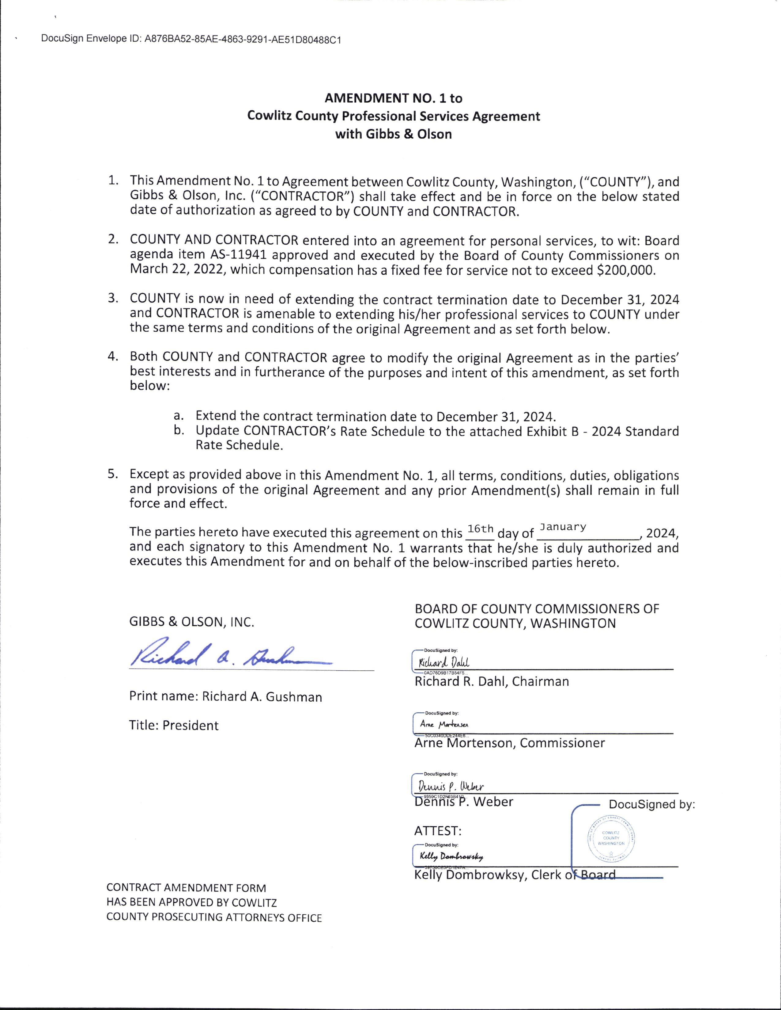 8. Amendment No. 2 to the Professional Services Agreement with Gibbs & Olson for OnCall Water and Waste Water Engineering Services to extend the contract termination date to December 31, 2025. (13887)