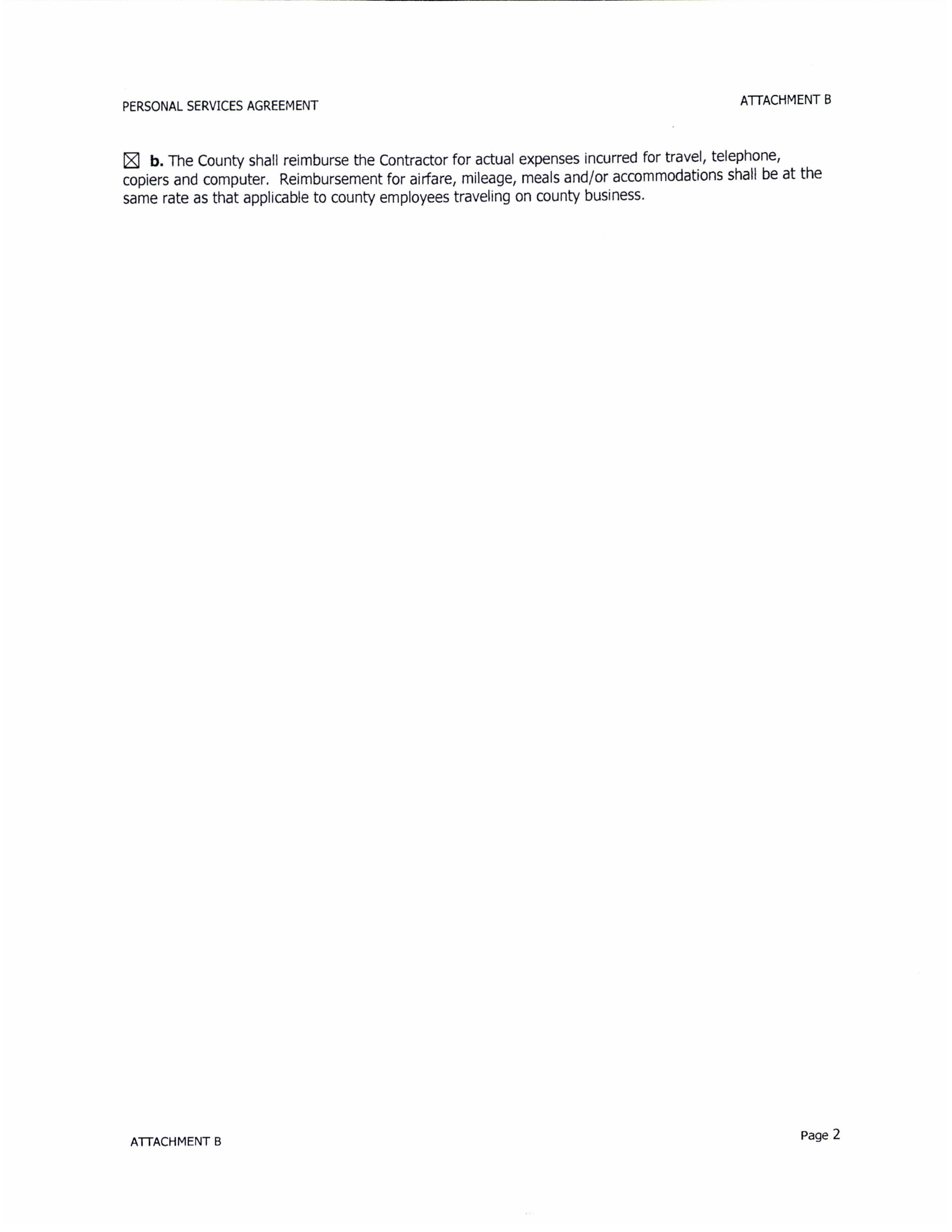 2. Payment. Subject to Section 1, the County shall reimburse the Subrecipient for costs and expenses necessary to perform activities described in the Scope of Work (Attachment A). The Subrecipient shall ensure that requests for reimbursements are based on billings supported by appropriate documentation of costs and expenses actually incurred. Additionally, the Subrecipient shall ensure that monthly invoices include receipts, reports, and other detailed documentation of charges