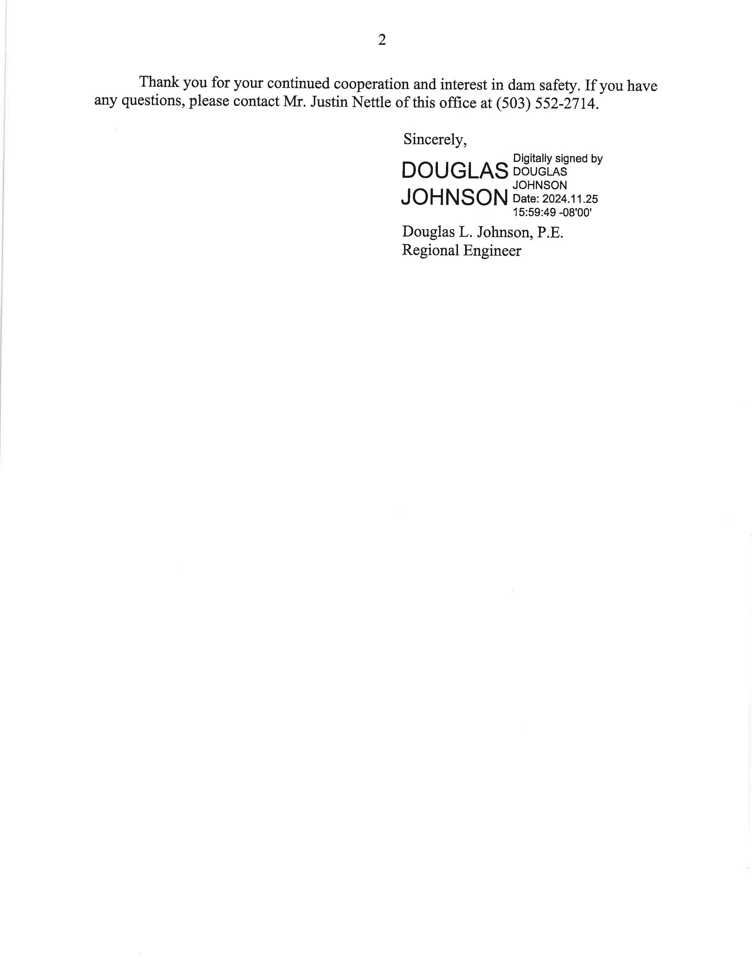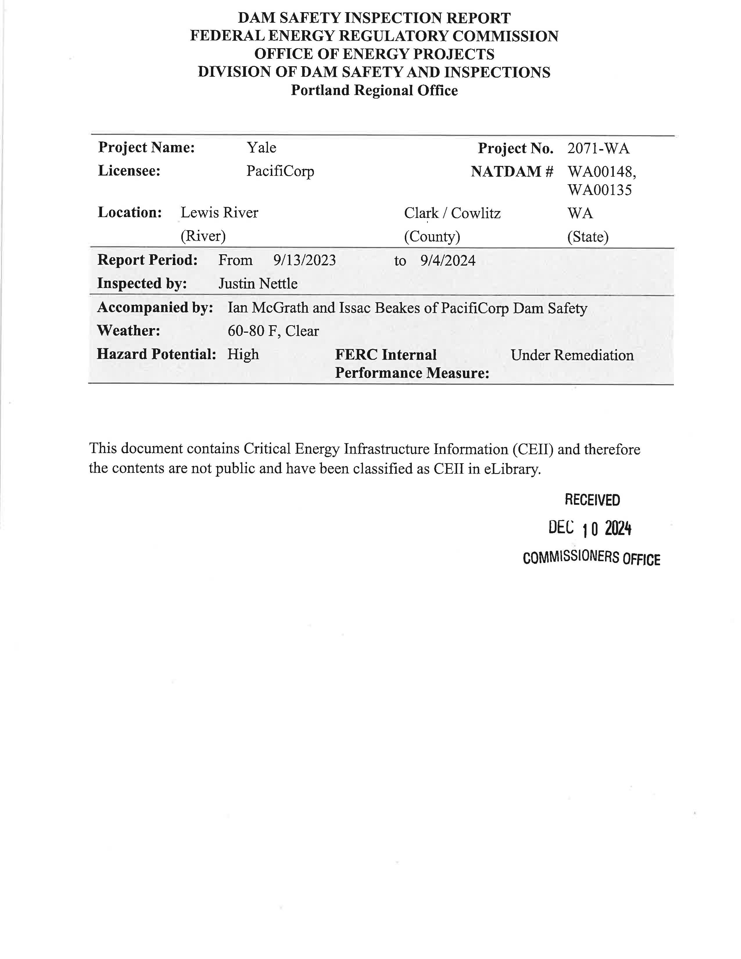 c. Federal Energy Regulatory Commission (FERC) Notice dated 12/10/2024 regarding the Dam Safety Inspection Report. (13903)