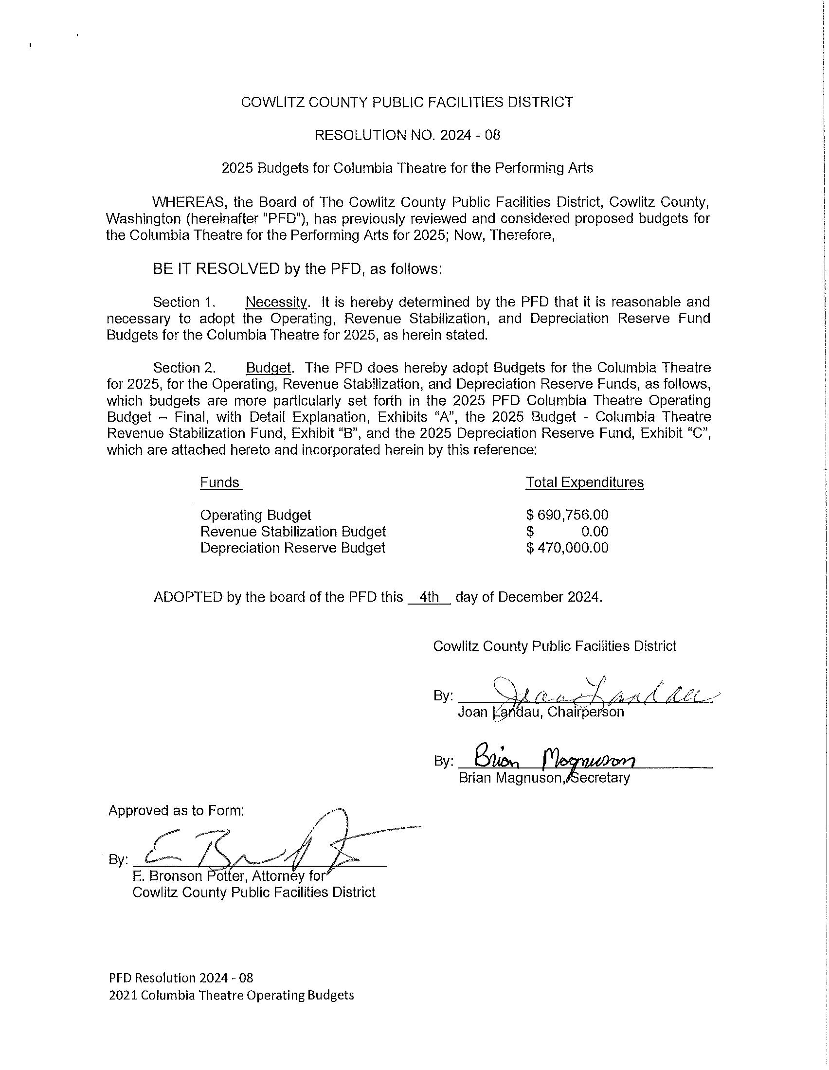 15. Executed Contracts/Agreements/Resolutions