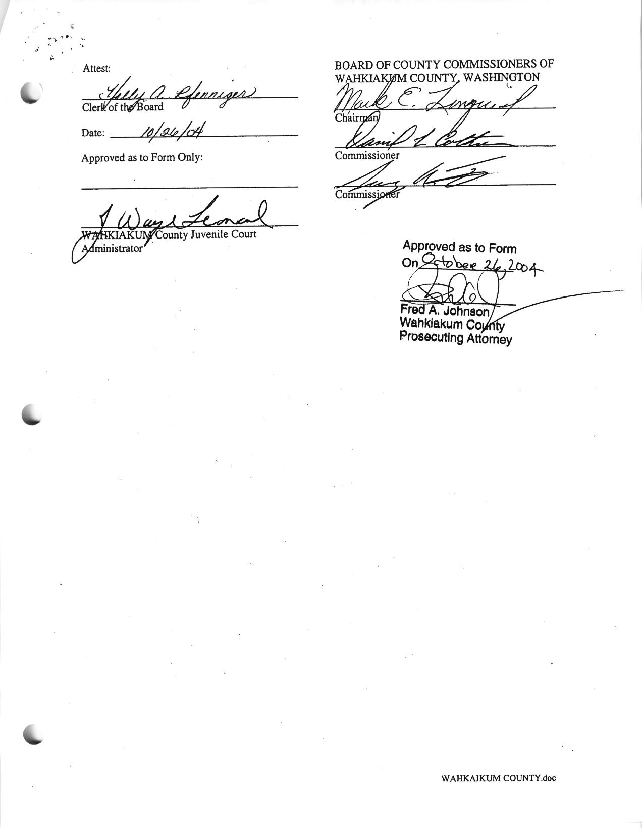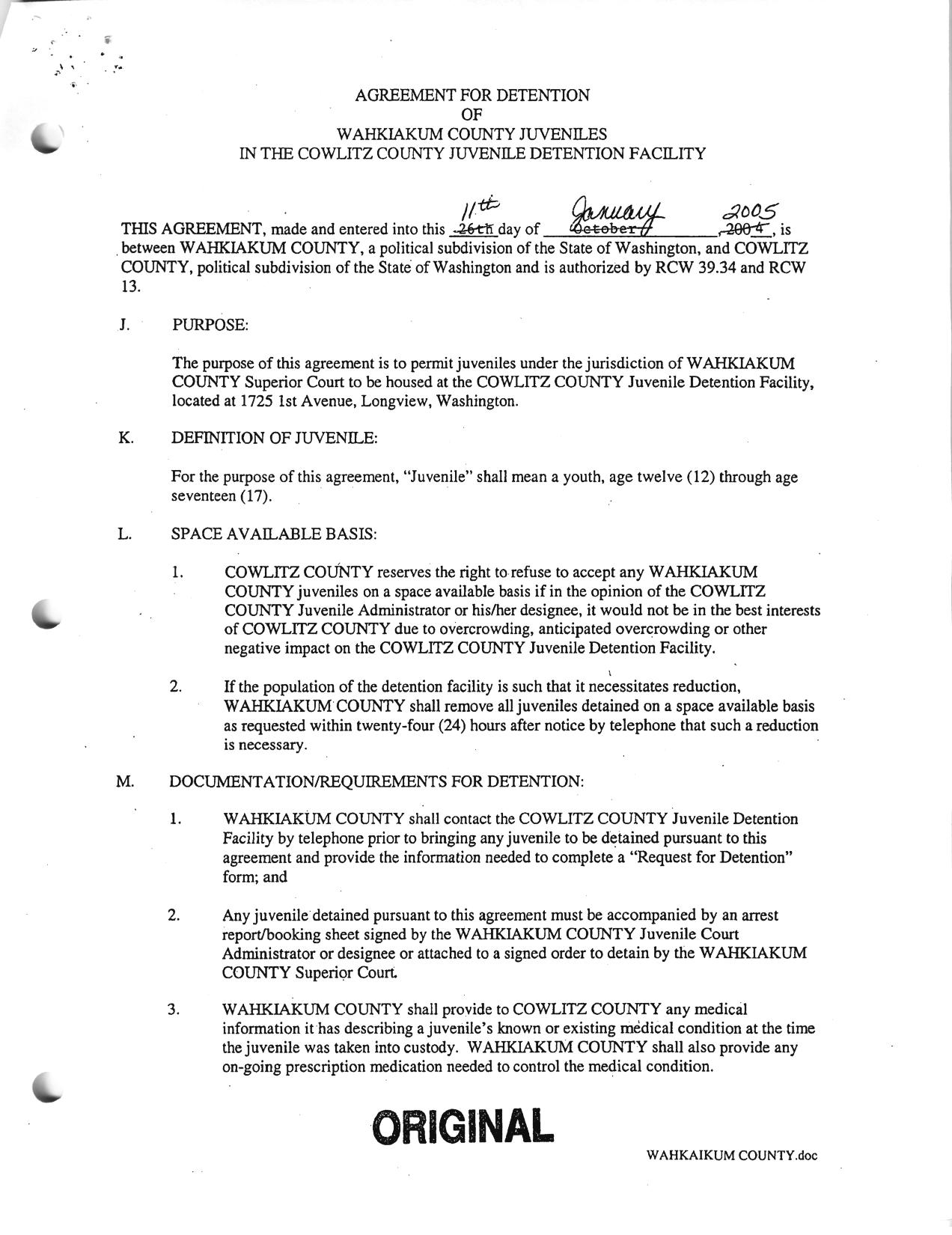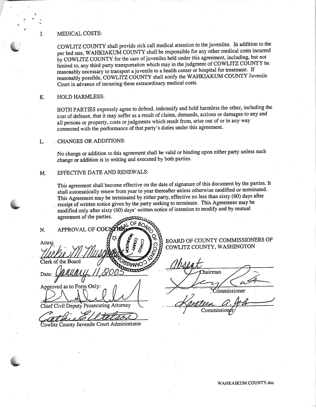 3. Amended Agreement with Wahkiakum County for Juvenile Detention Services to extend the contract period, increase the bed rate, and add new contract language to reflect current standards. The bed rate is $250 per day. (14775)