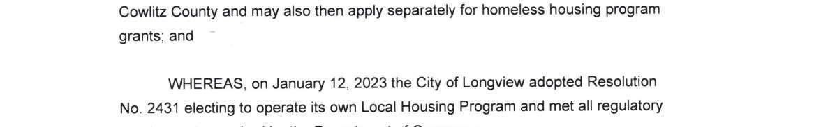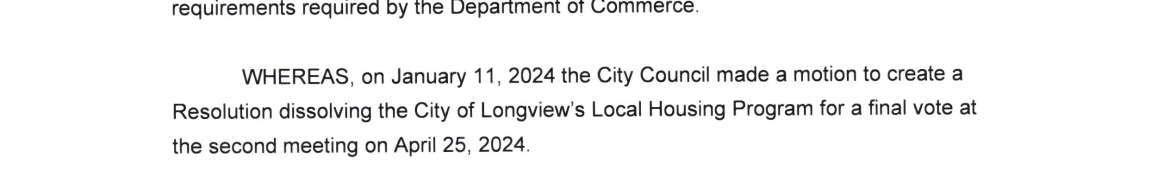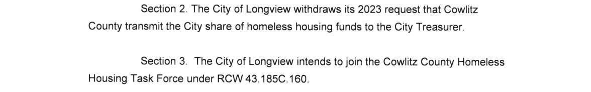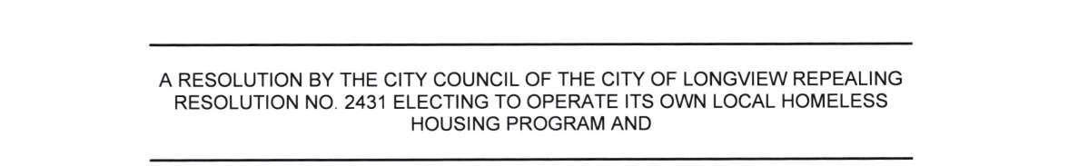 a. City of Longview Resolution Repealing Resolution No. 2431 Electing to Operate its ownLocal Homeless Housing Program.