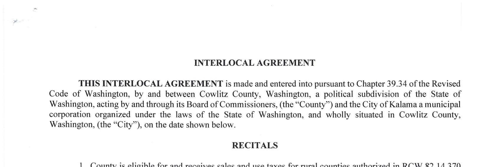1.Interlocal Agreement with the City of Kelso to provide after-hours Animal Control Services.
