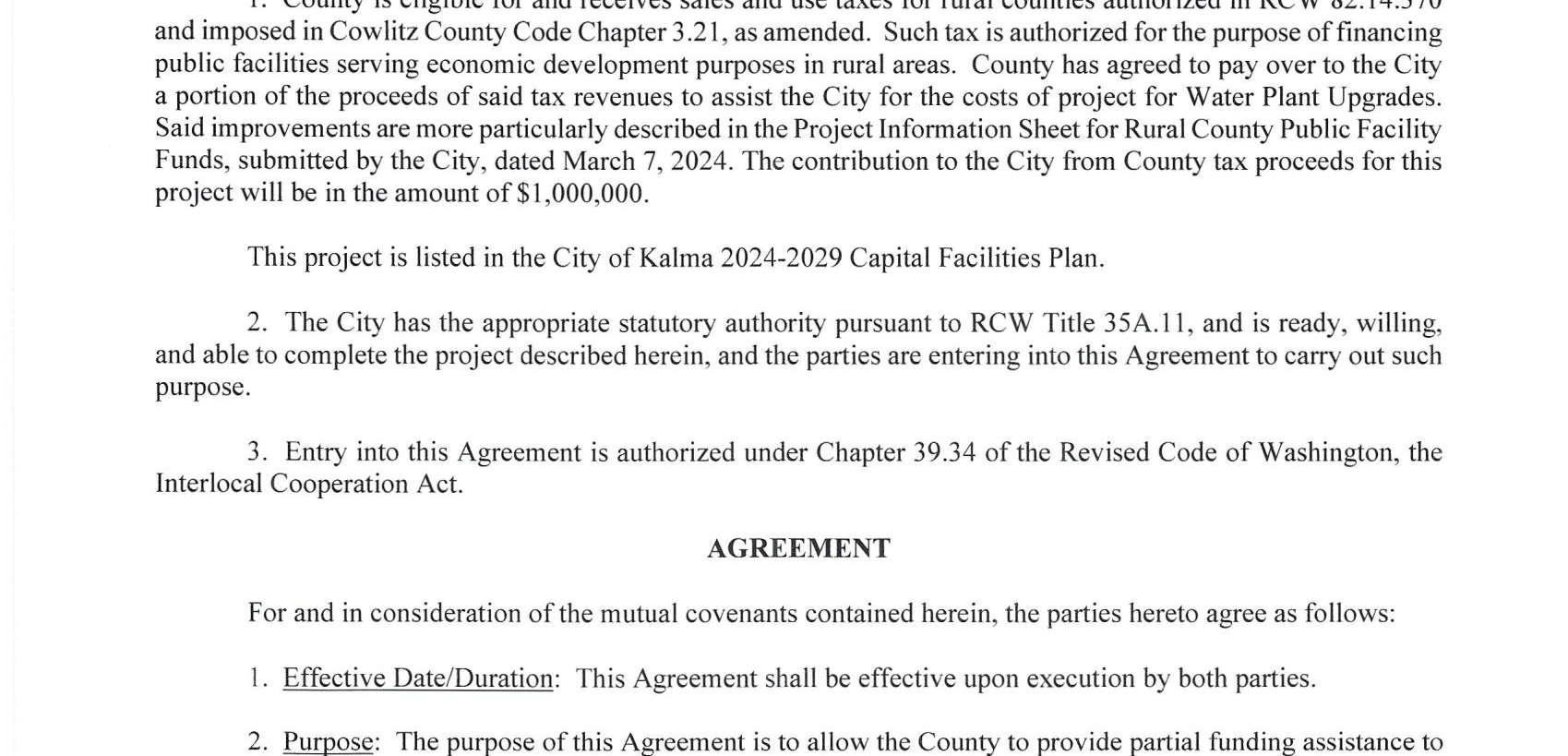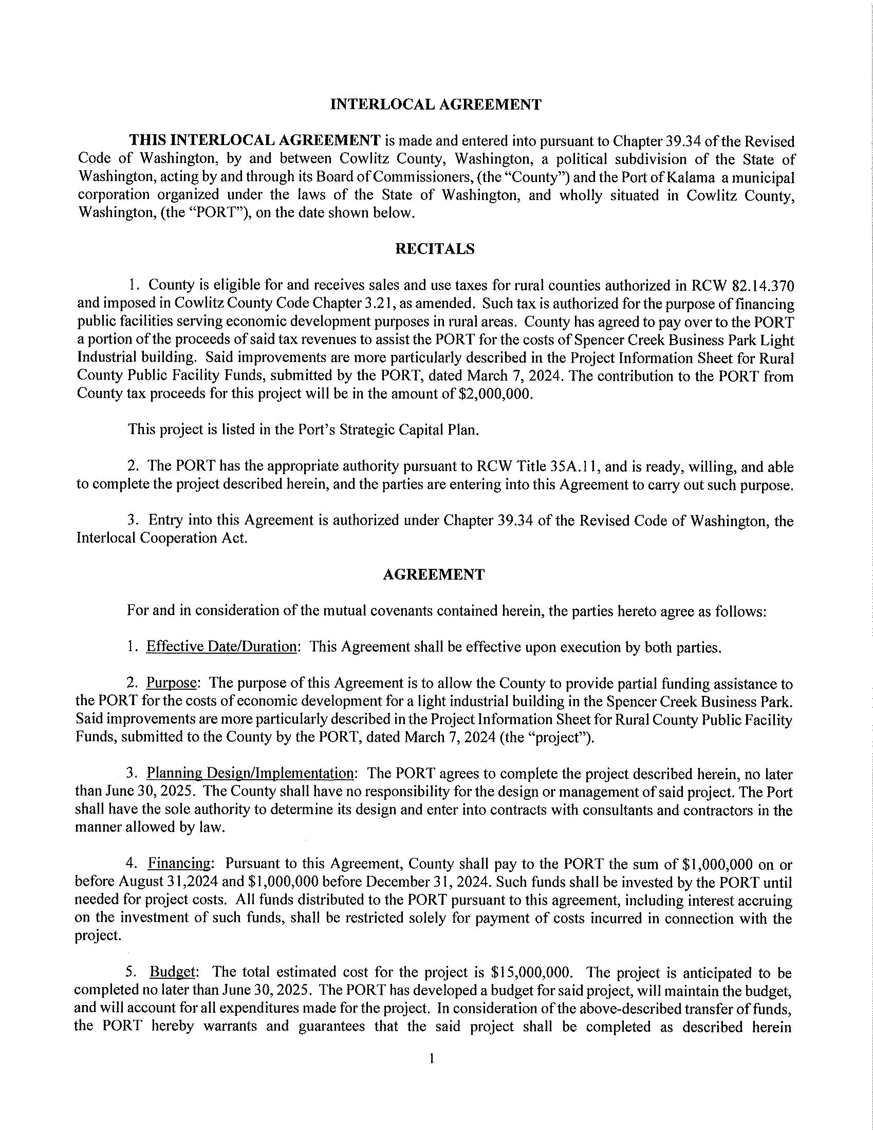3.Interlocal Agreements with the City of Kalama, the City of Castle Rock, the Port of Kalama, the Port of Woodland, and the Public Facilities District to expend Rural Public Facilities funds for 2024 submissions that will support economic development goals.