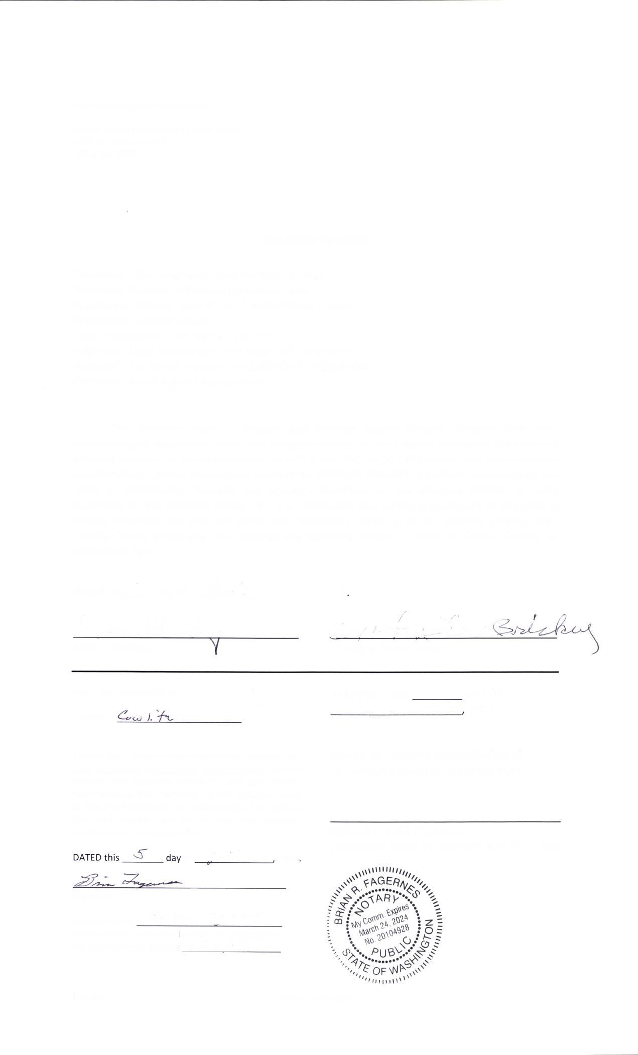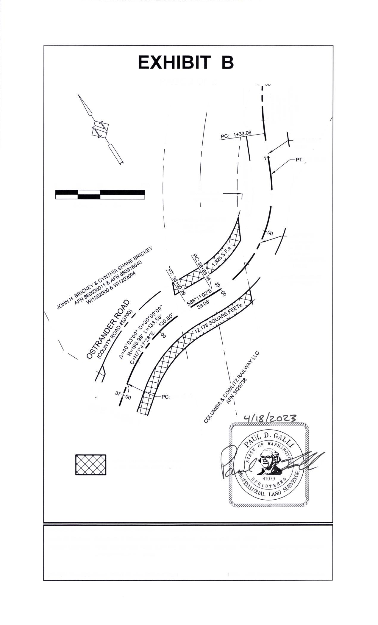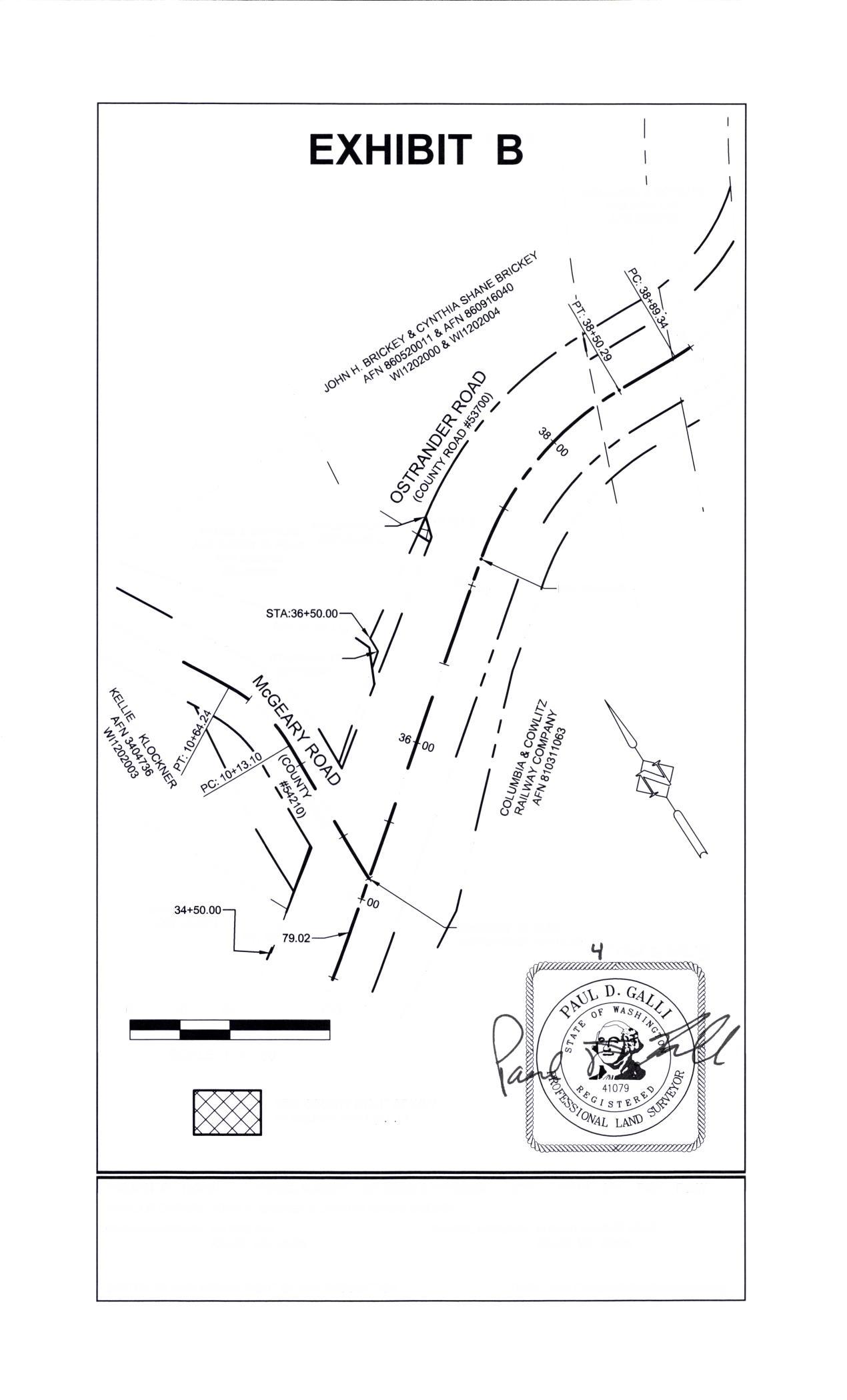 Attached is a Warranty Deed for Right of Way from Columbia & Cowlitz Railway, LLC, a Delaware Limited Liability Company, for the Ostrander Road Culvert Replacement Project. The easement area is approximately 14,003 square feet. The Warranty Deed is granted for consideration of $5,700.00.