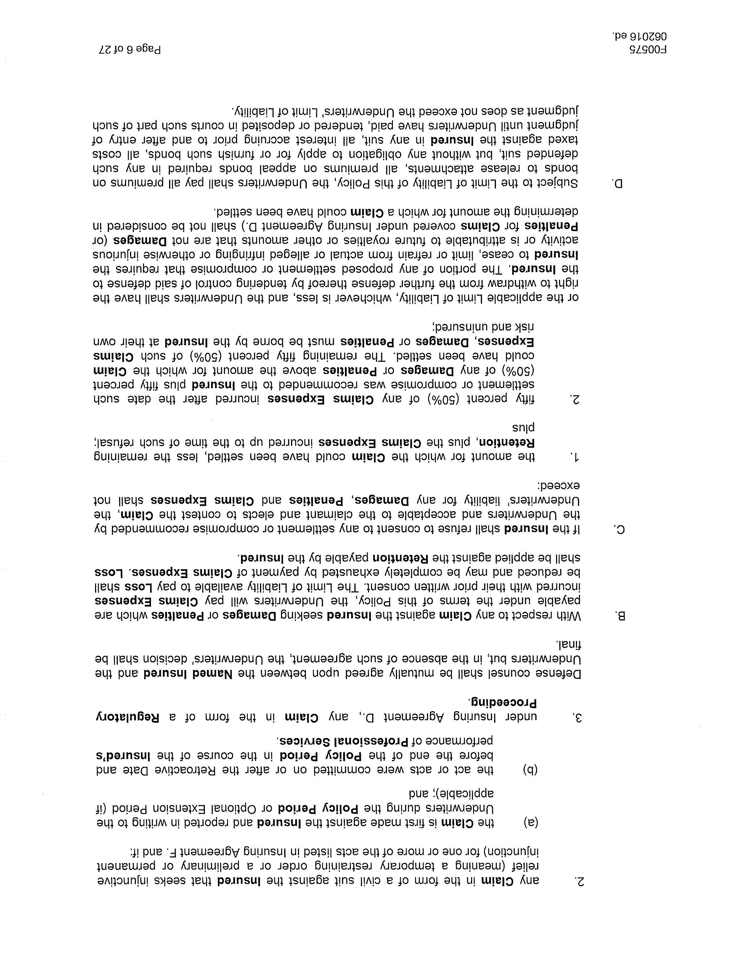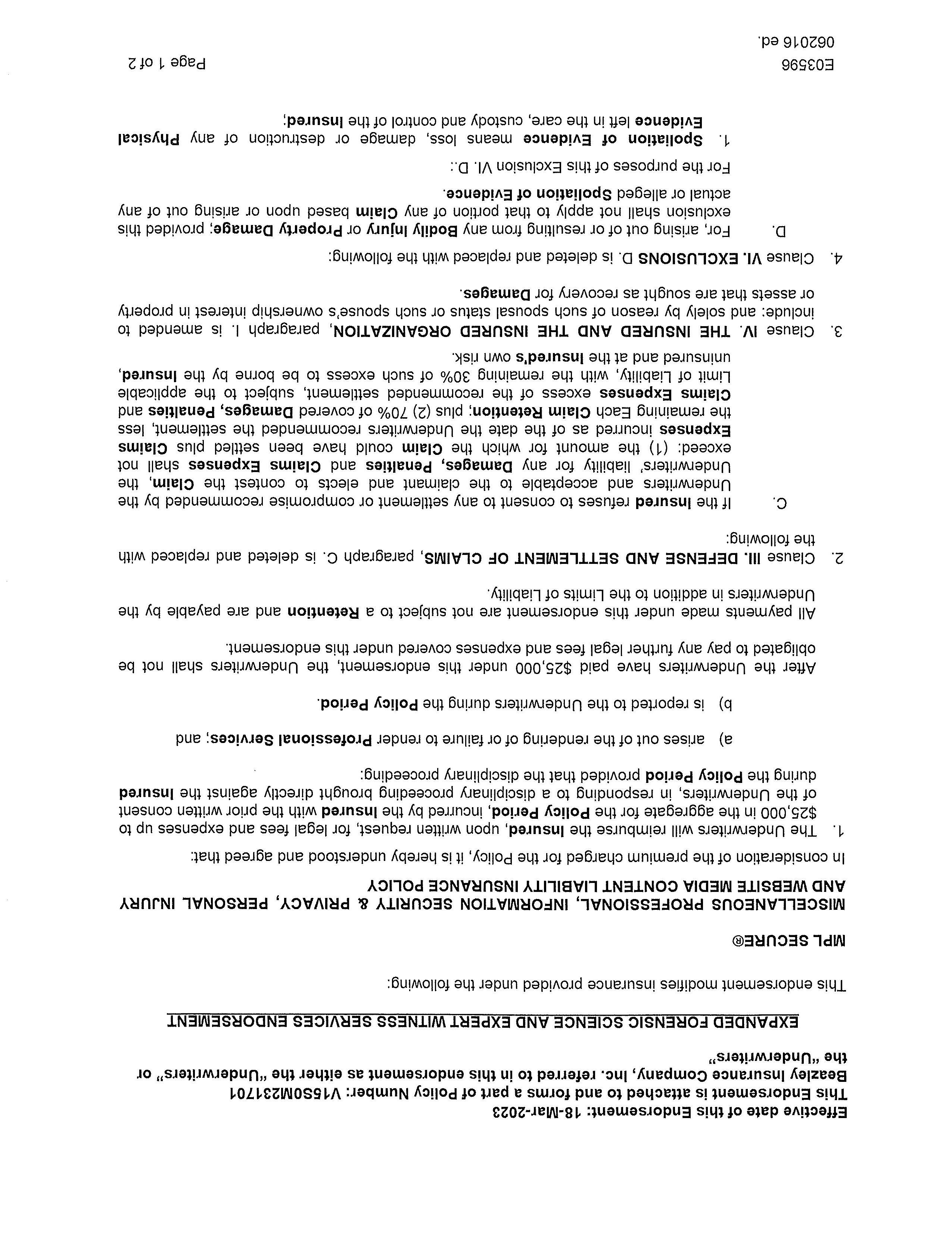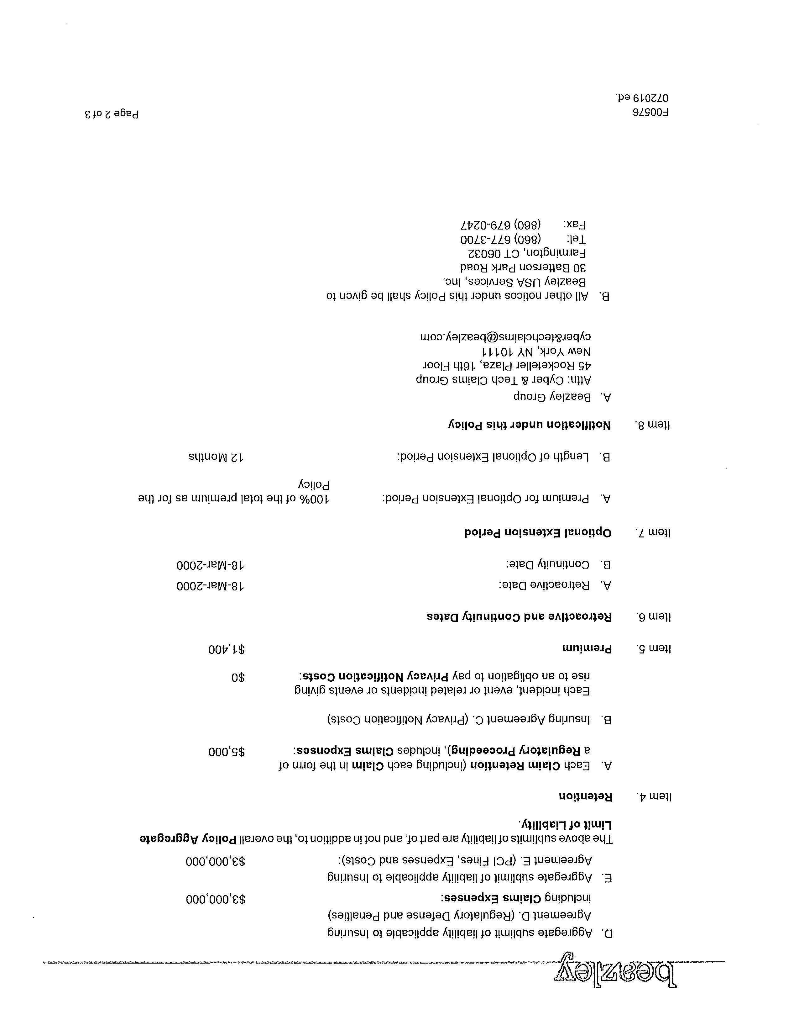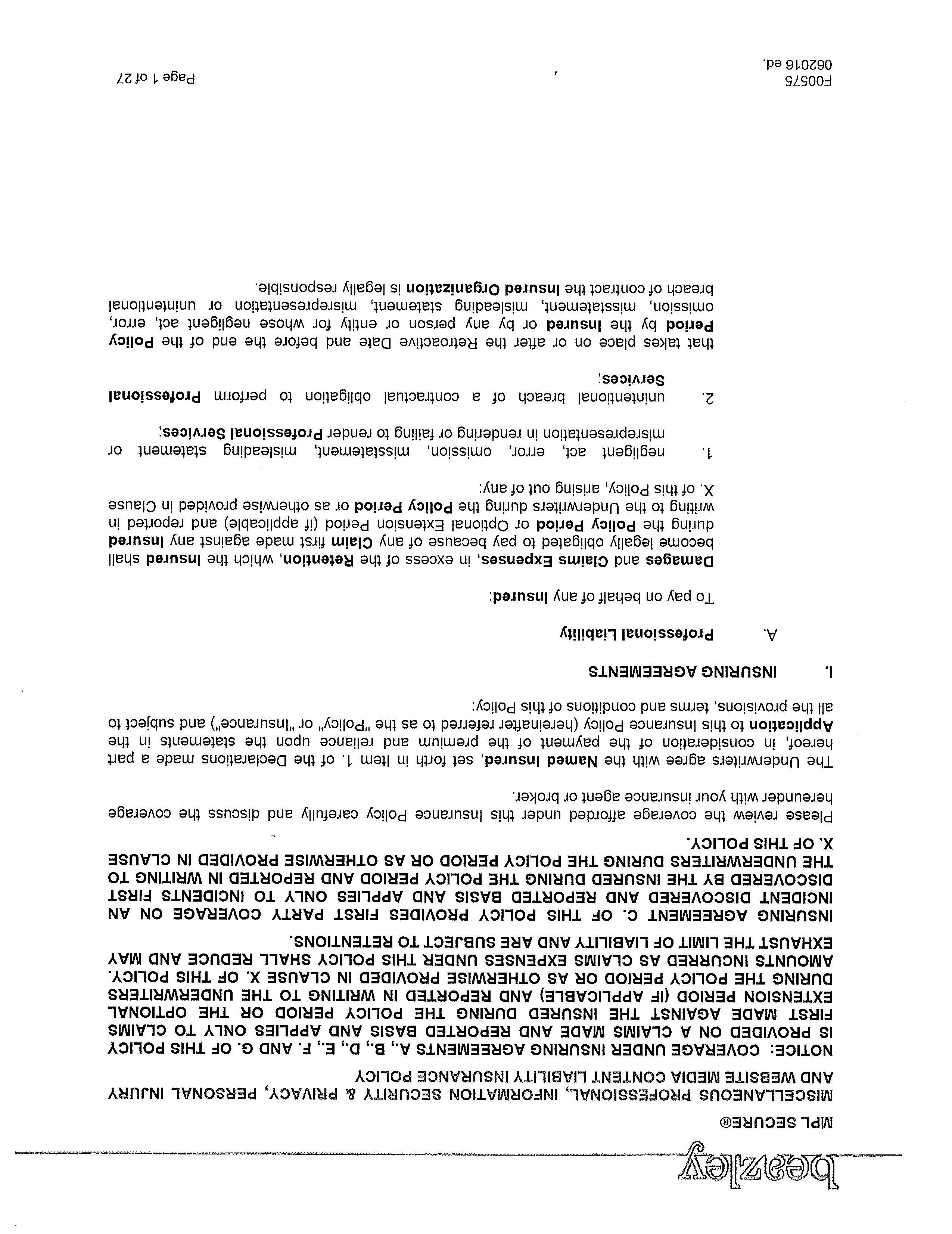 8. Insurance Contractor will maintain professional liability insurance during the term of this Agreement substantially in the form and with the coverages reflected in the Certificate of Insurance, which is attached as Exhibit 3 and incorporated herein by reference.