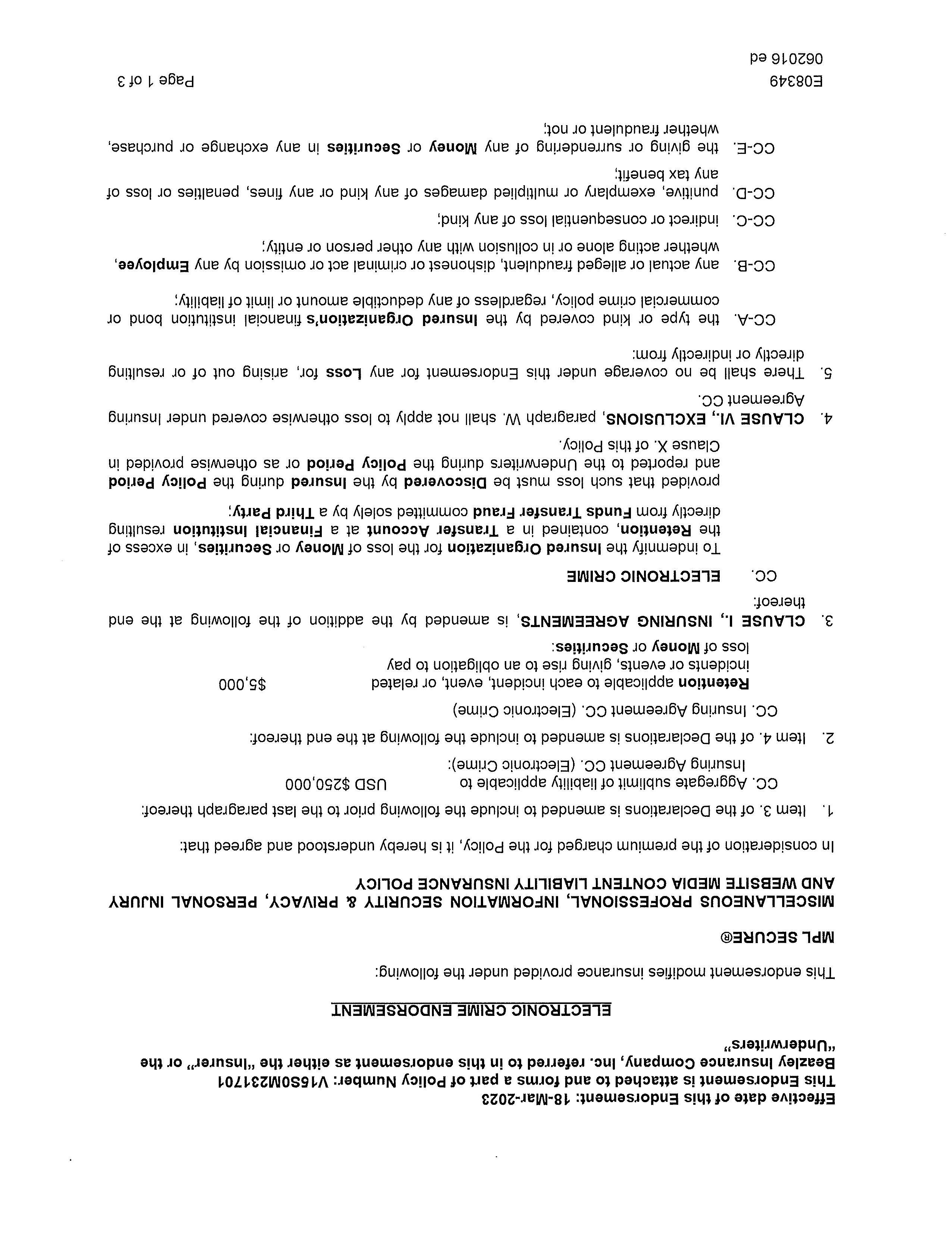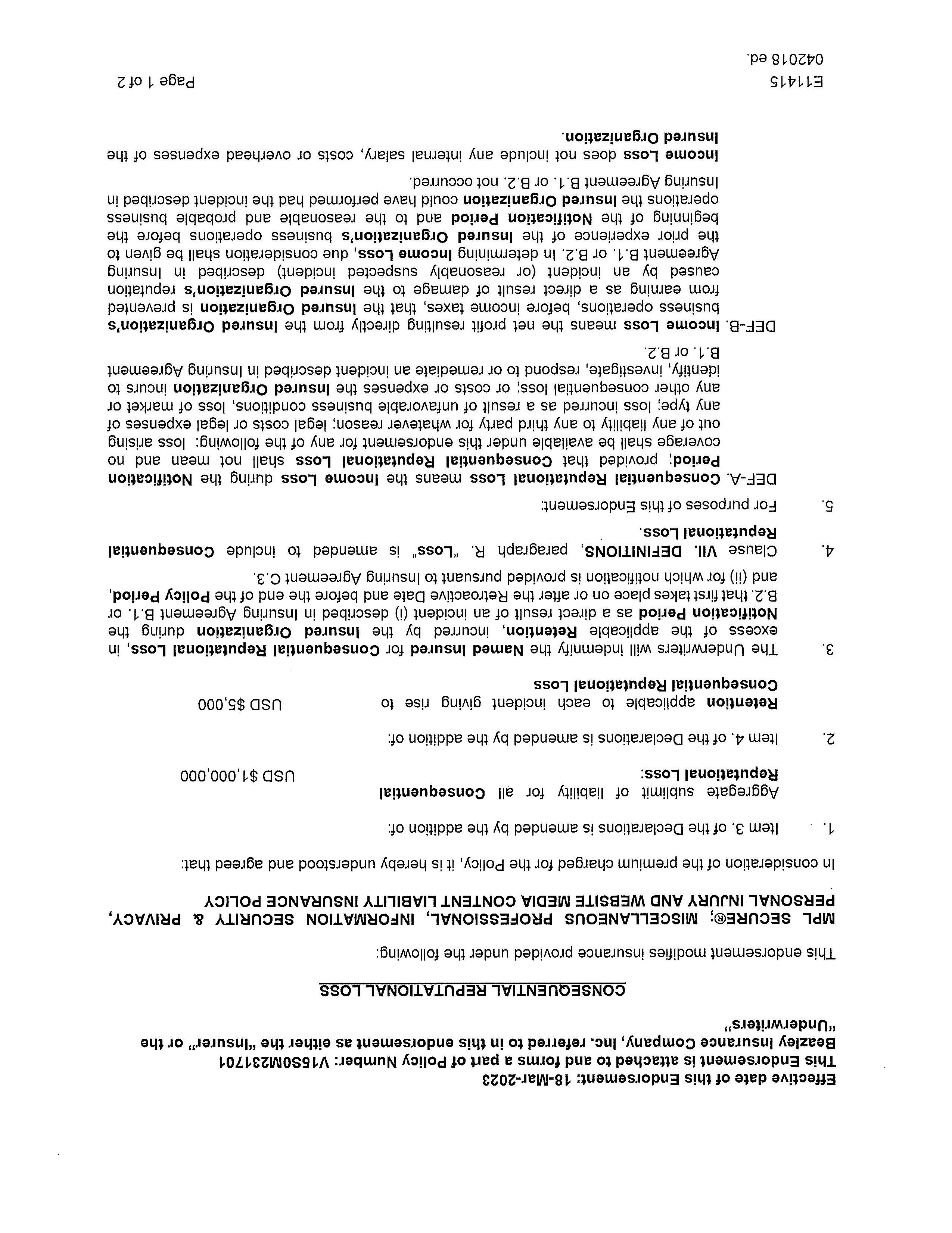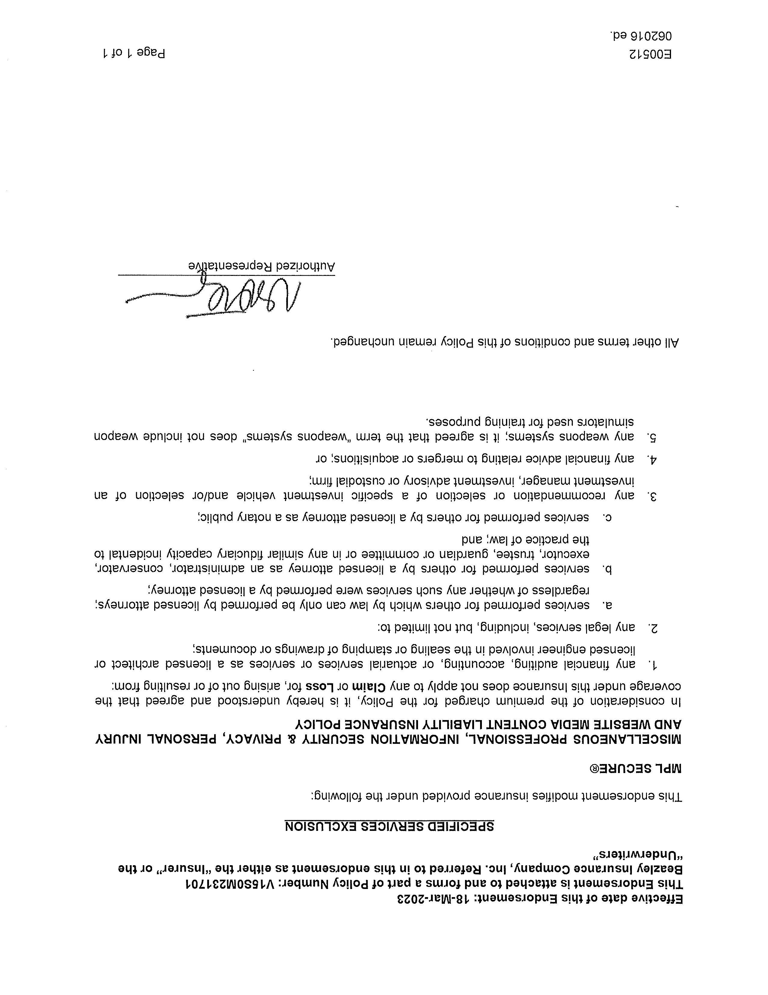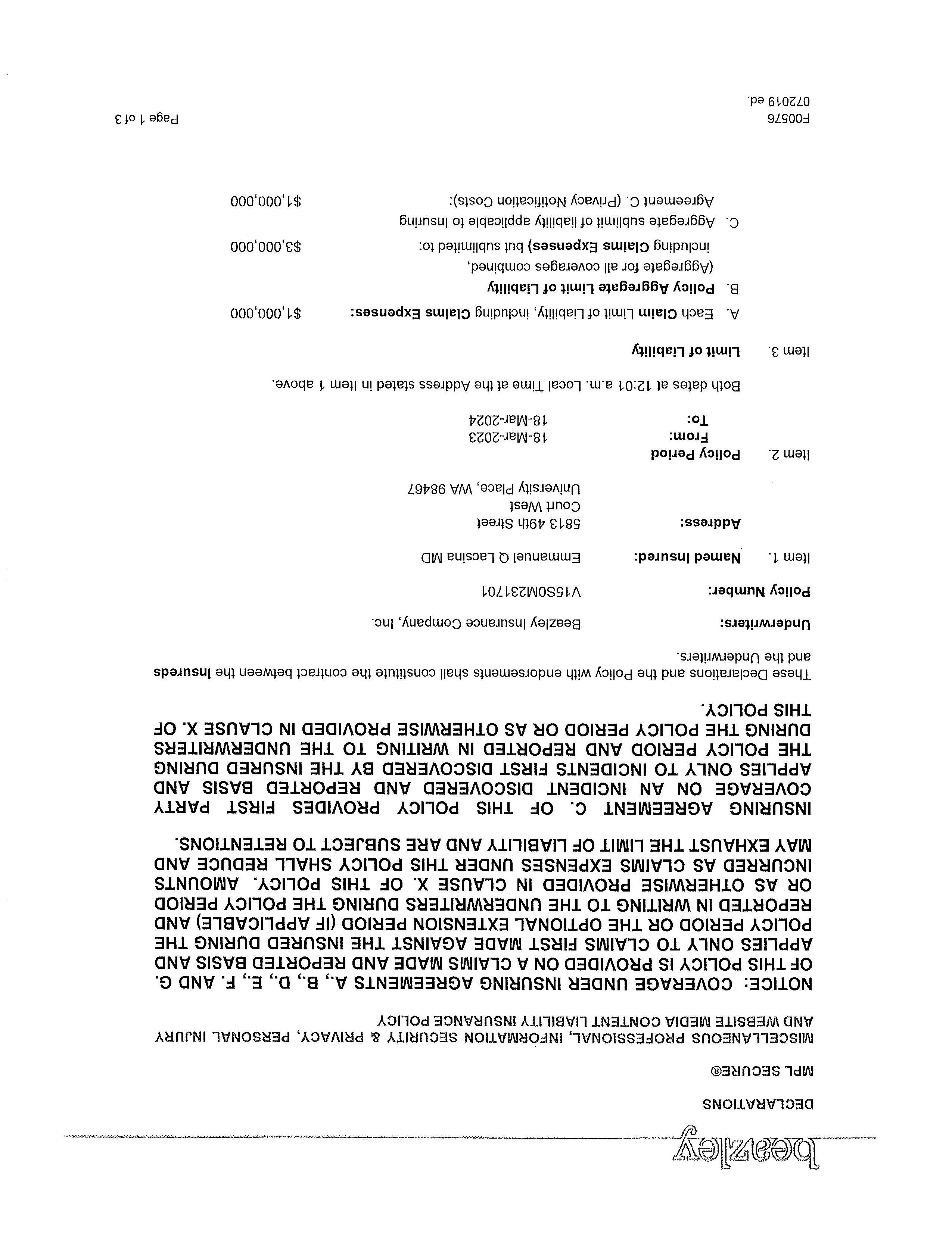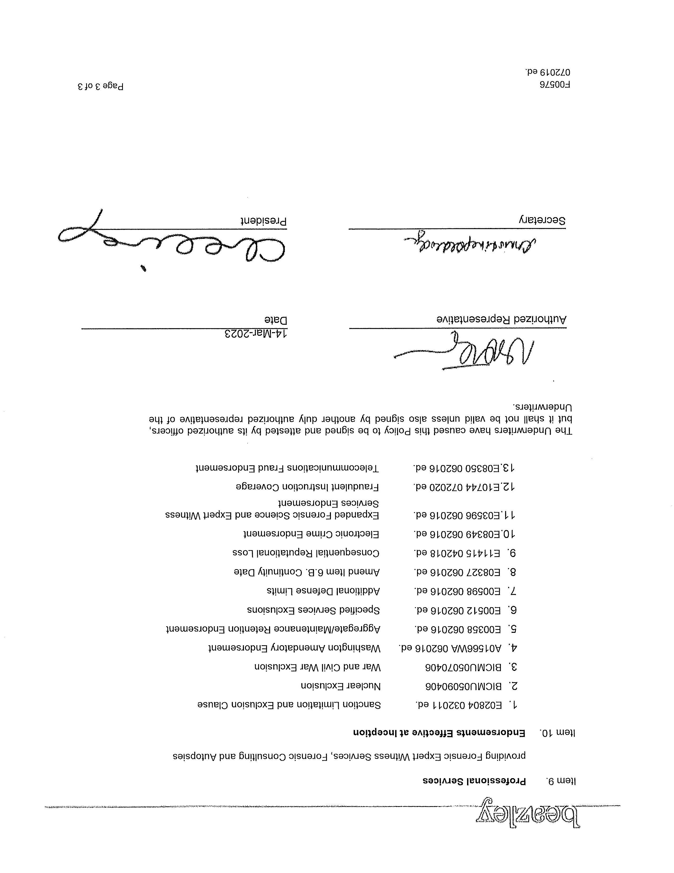 8. Insurance Contractor will maintain professional liability insurance during the term of this Agreement substantially in the form and with the coverages reflected in the Certificate of Insurance, which is attached as Exhibit 3 and incorporated herein by reference.