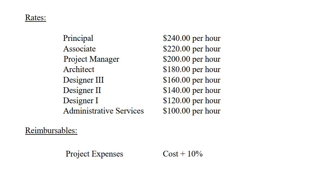 The County will pay the invoice within thirty (30) days of its receipt. The fee schedule for the services shall be as follows: