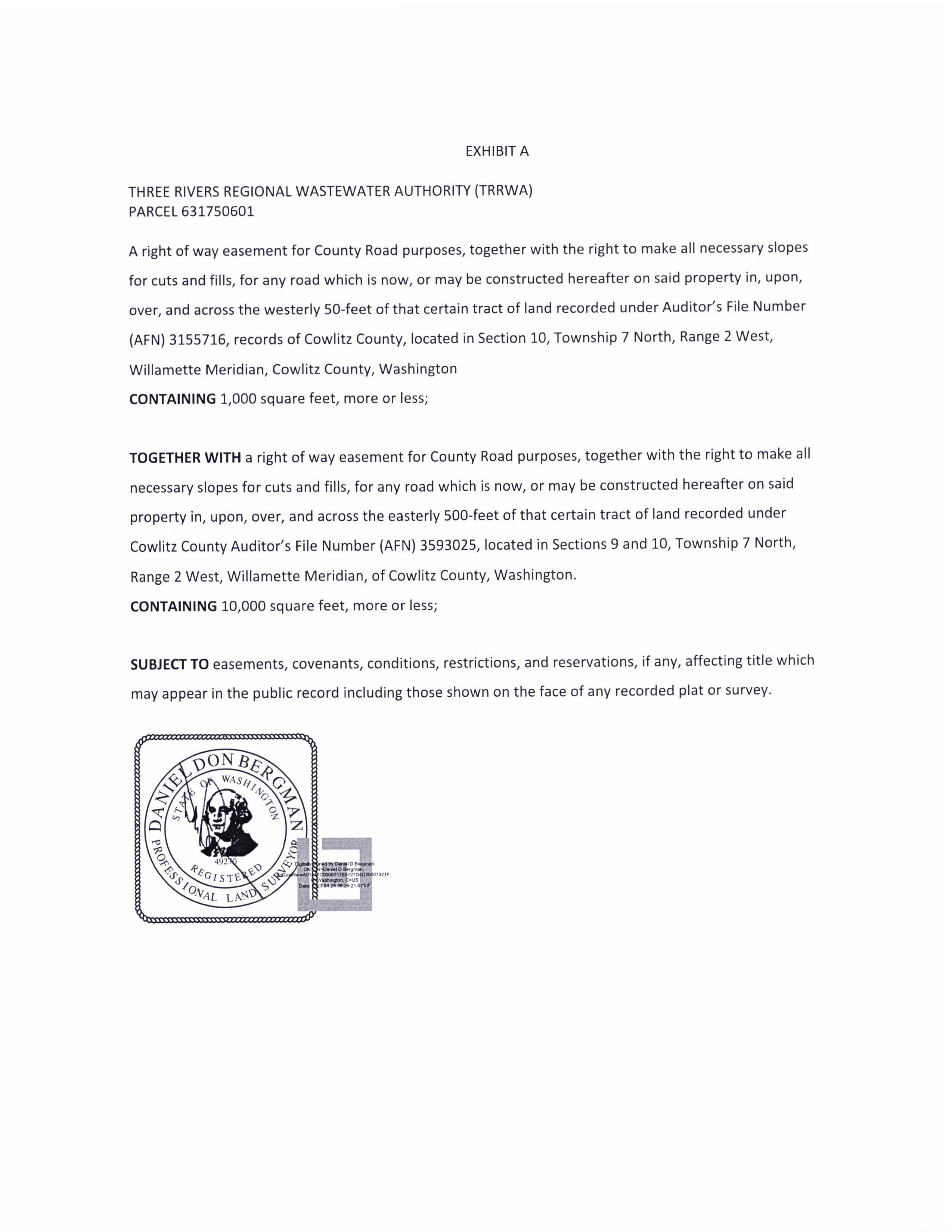 EASEMENT - Perpetual Right of Way Easement for County Road Purposes - Three Rivers Wastewater Authority