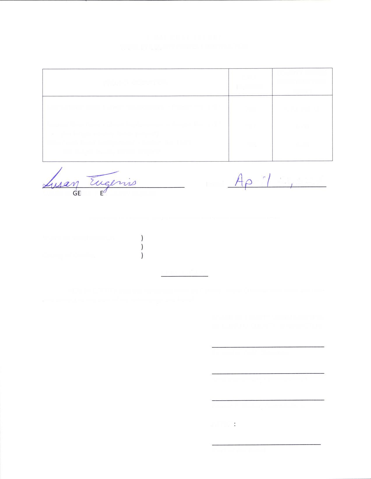 1. Final Cost Report from County Forces for work done on the Kalama River Road Culvert Replacement project from MP 2.35 to MP 2.39 to correct the milepost error and update the status of two other projects.