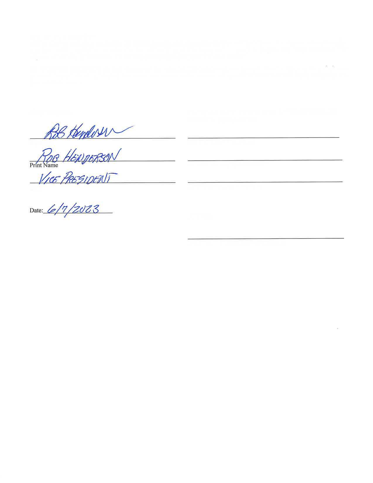 REMAINDER OF THIS PAGE INTENTIONALLY LEFT BLANK SIGNATURE PAGES