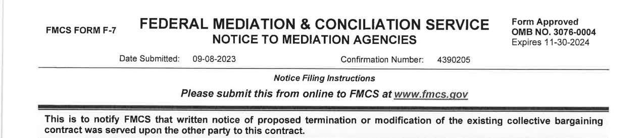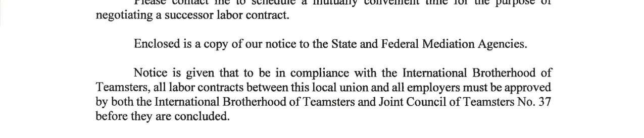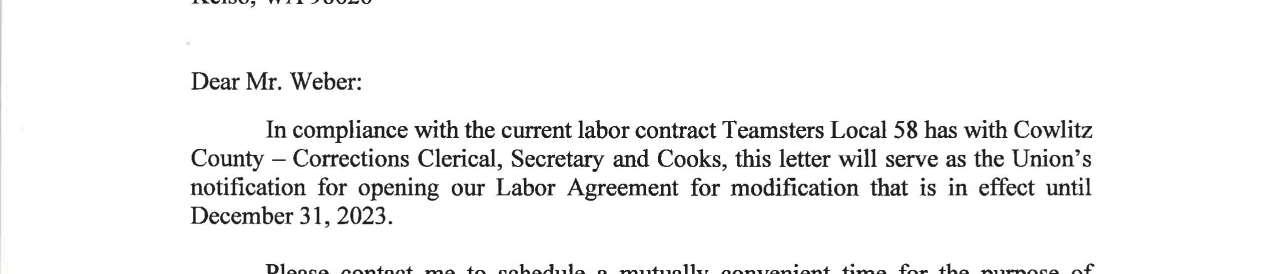 b. Letter dated 9/8/2023 from Justin Baptista, Union Representative from Teamsters Local Union No. 58 regarding the Union's notification for opening their Labor Agreement for modification.