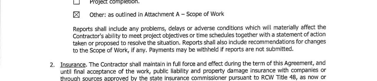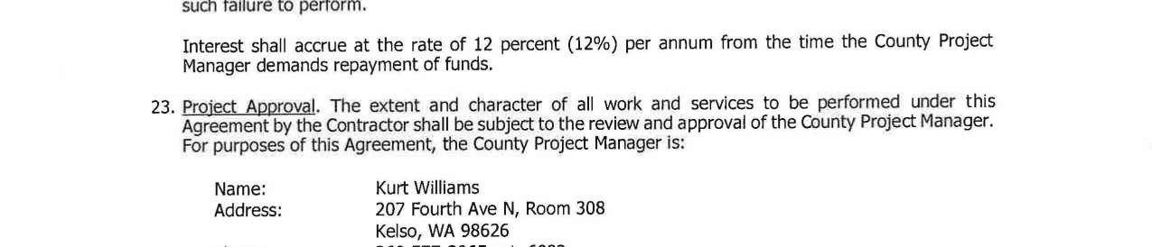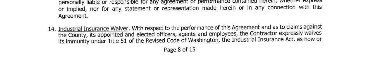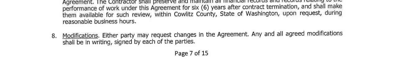 13. Personal Service Agreement with Gibbs & Olson, Inc. for Phase 1 of the Toutle Wastewater Treatment Plant Improvements Project. Total cost will not exceed $82,000. Health & Human Services
