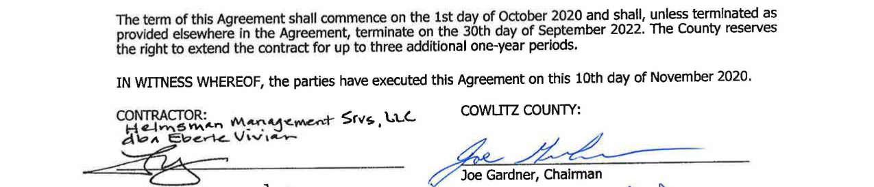 7. Contract Number: 2020-0006-01 with HELMSMAN MANAGEMENT SERVICES LLC, formerly EBERLE VIVIAN INCORPORATED, to extend services for workers'