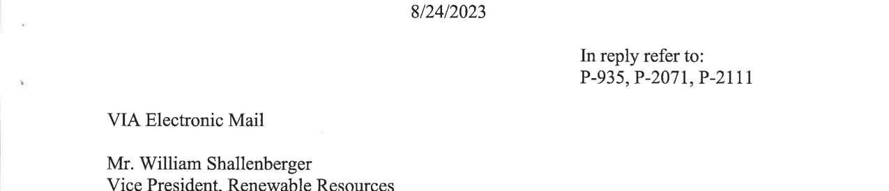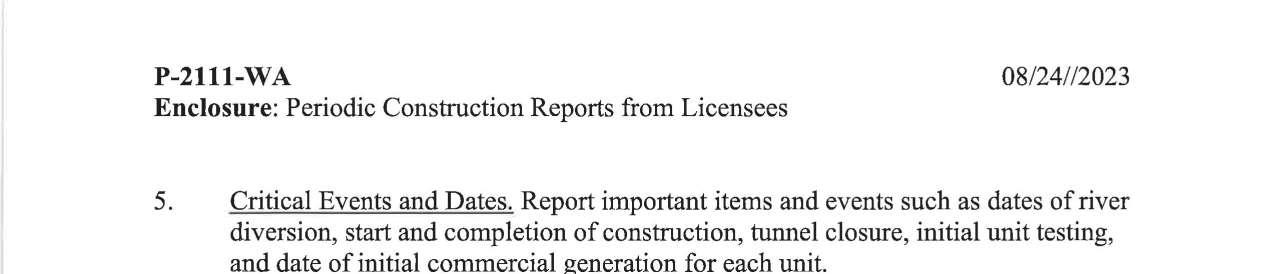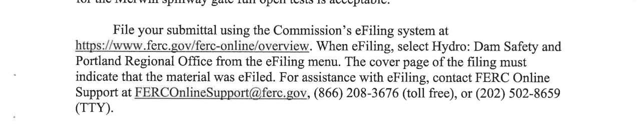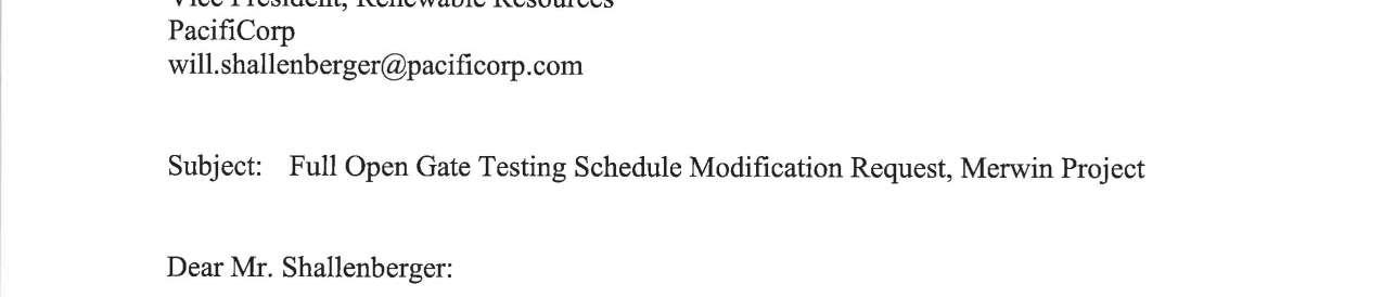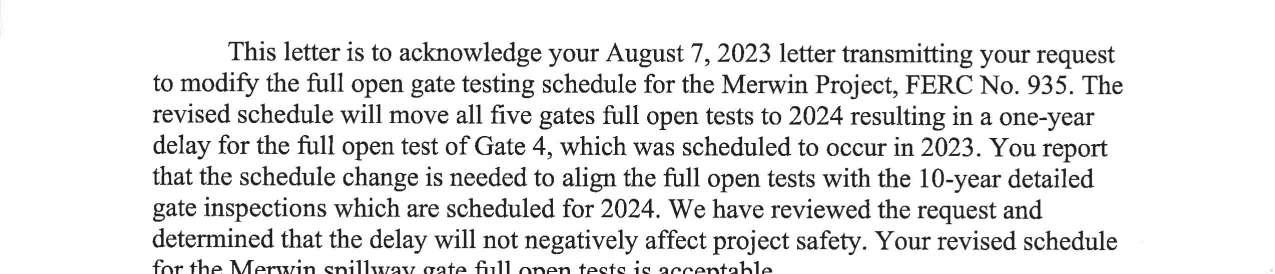 b. Federal Energy Regulatory Commission (FERC) Notice dated 8/24/2023 regarding Full Open Gate Testing Schedule Modification Request, Merwin Project