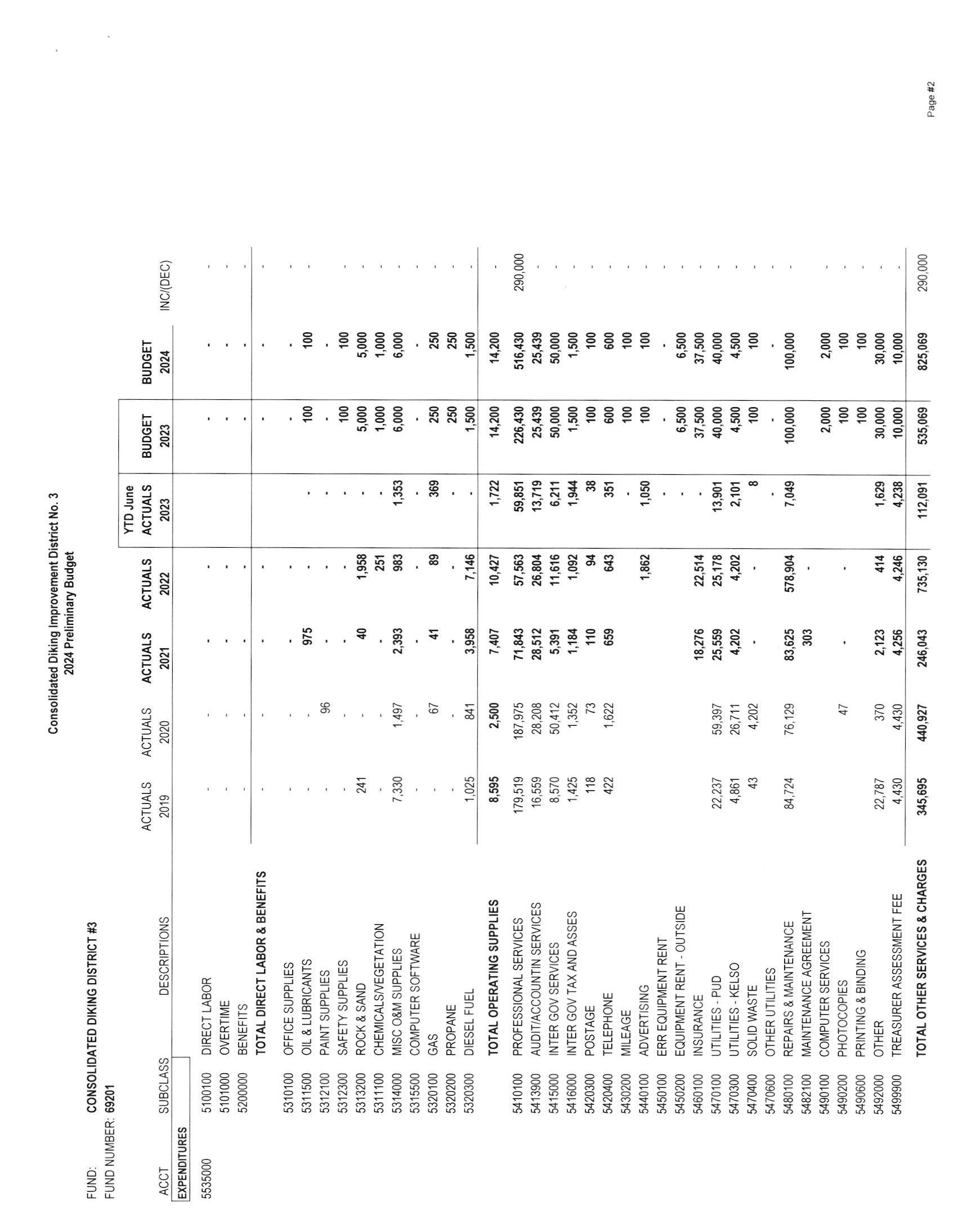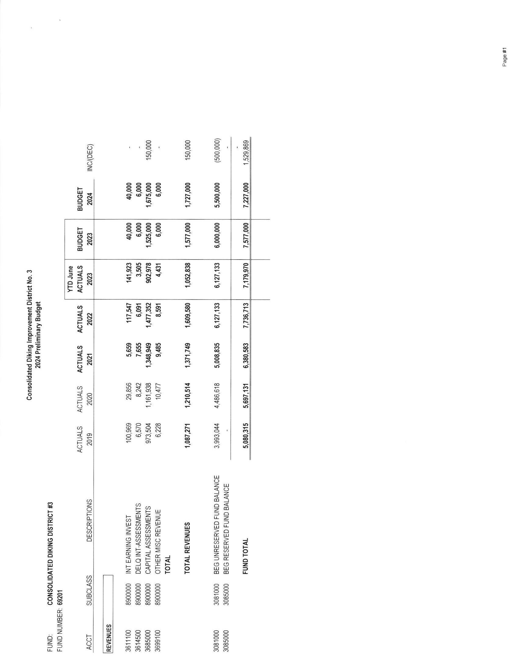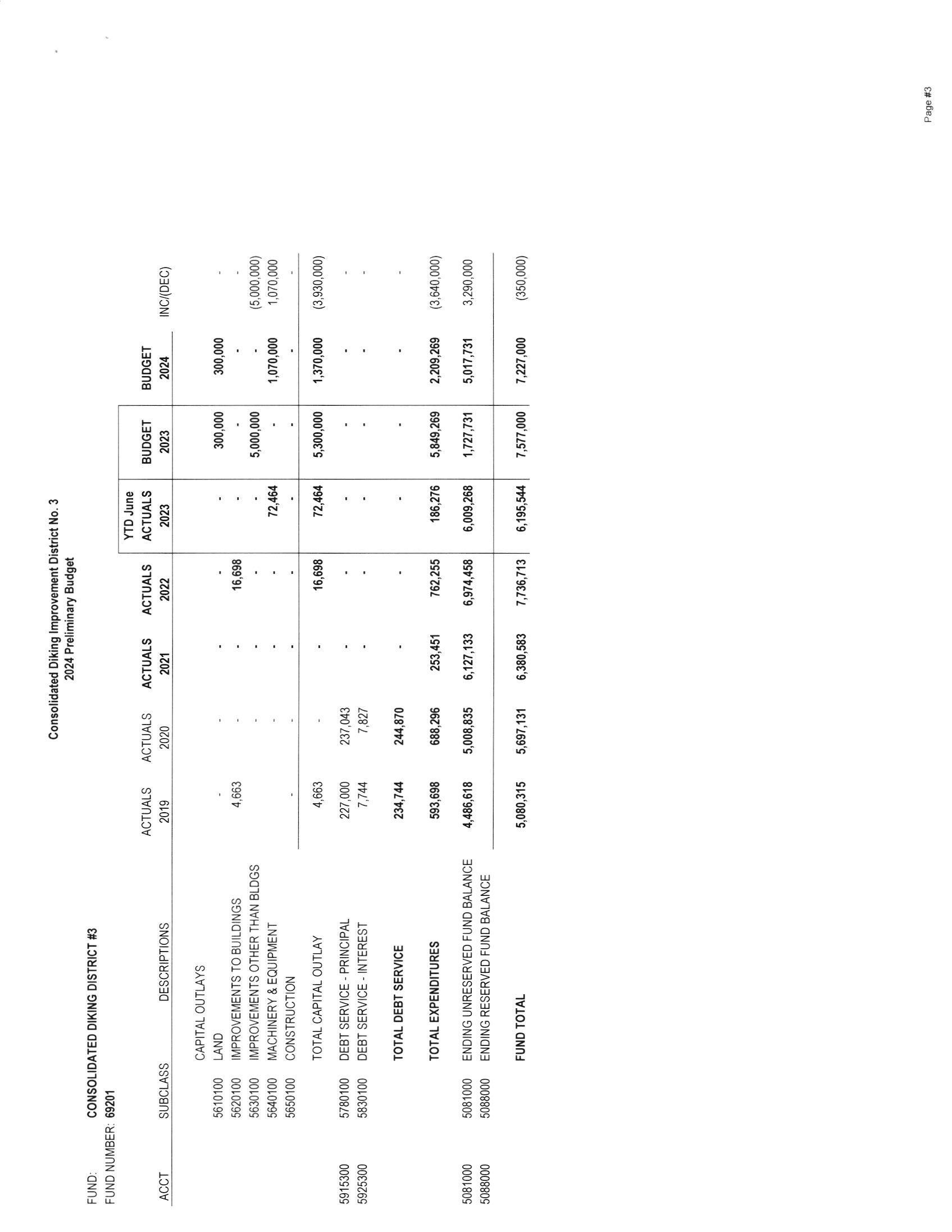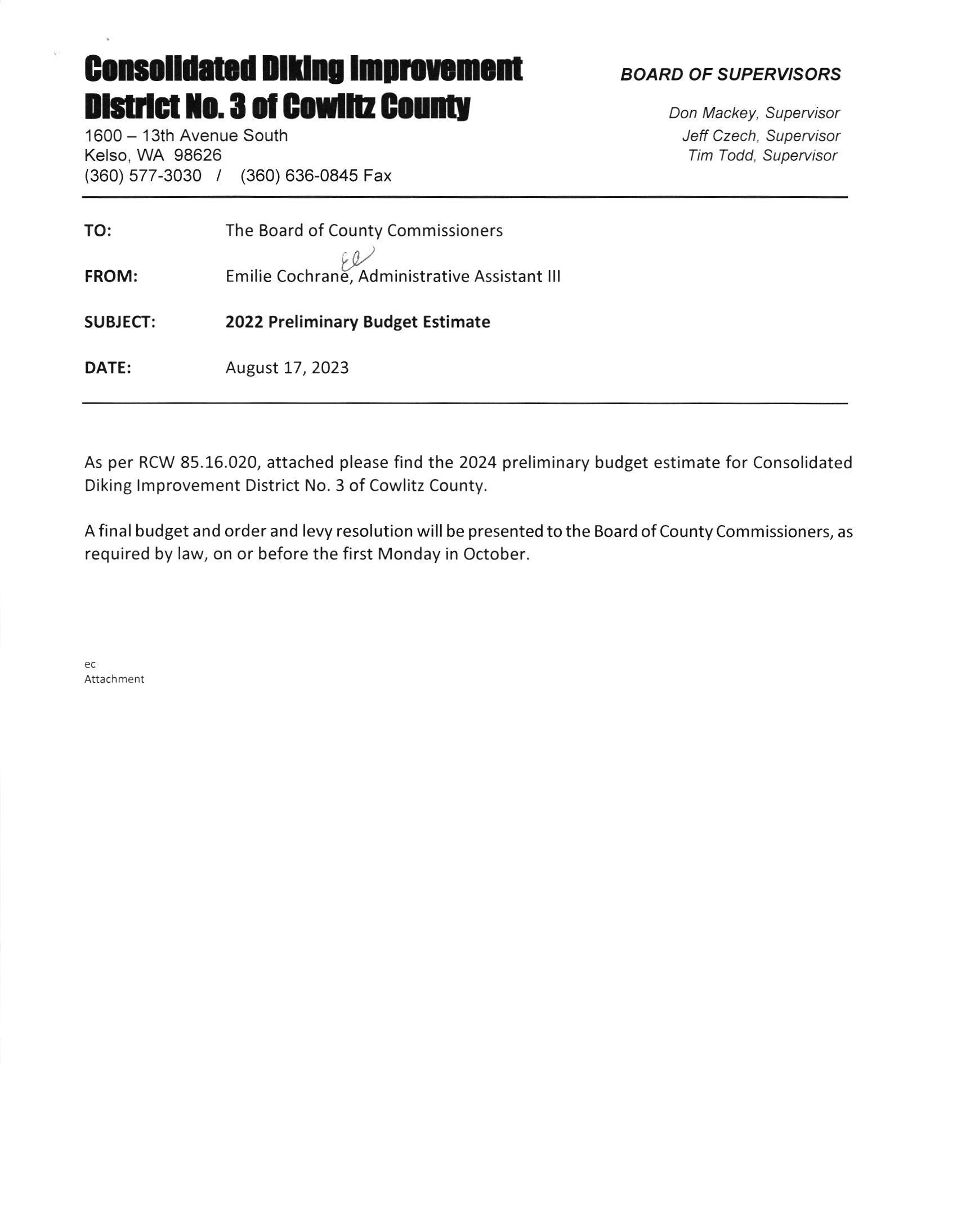 a. Memo dated 8/17/23 from the Consolidated Diking Improvement District No. 3 of Cowlitz county regarding the 2024 Preliminary Budget Estimate.
