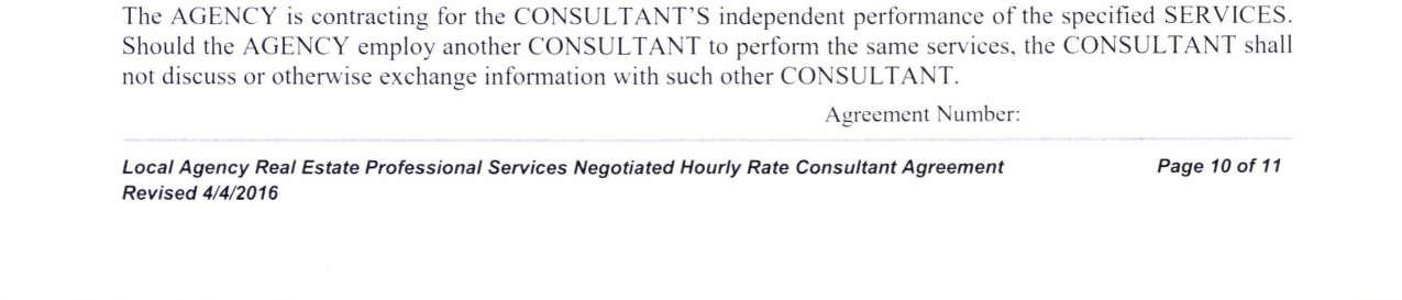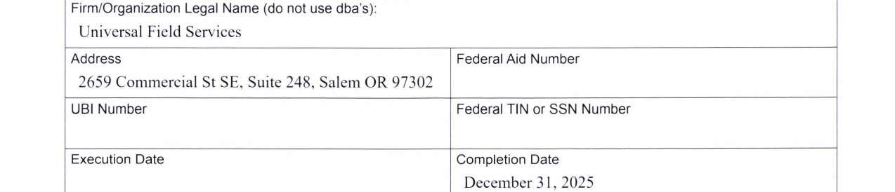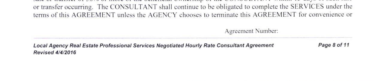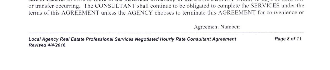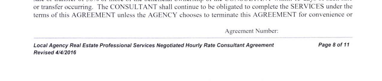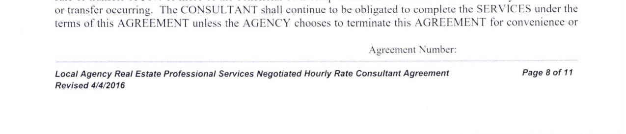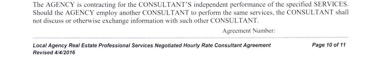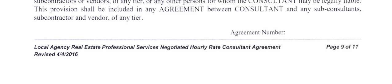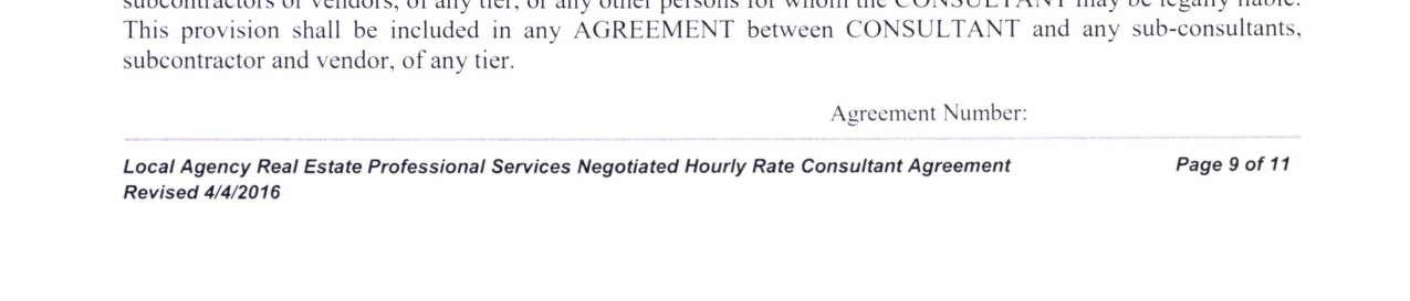 9. Local Agency Real Estate Professional Services Agreement with Universal Field Services to provide services pertaining to real estate acquisition for all property types that conform with federal and agency standards. The total compensation shall not exceed $100,000 shall be in effect until December 31, 2025, unless otherwise terminated.