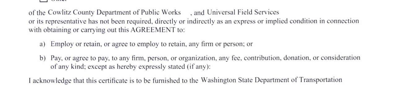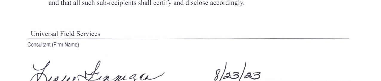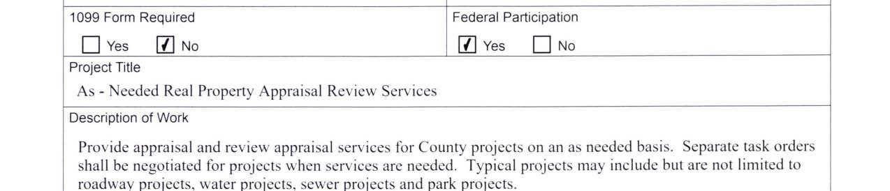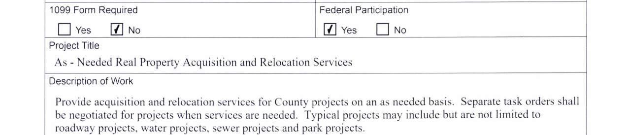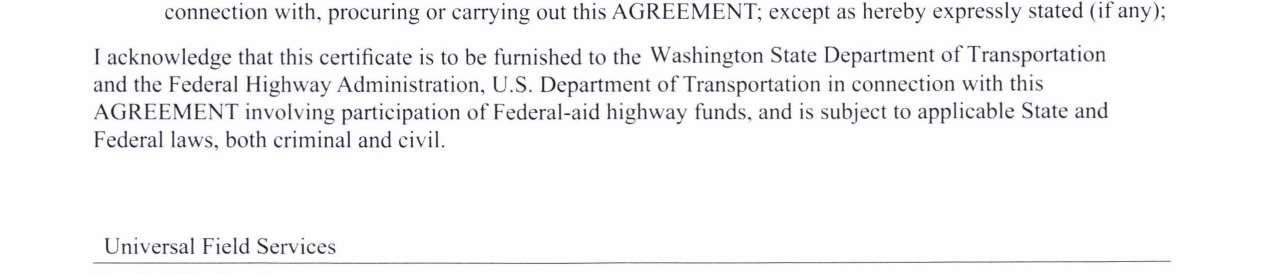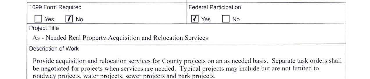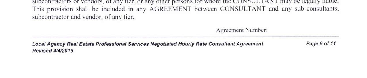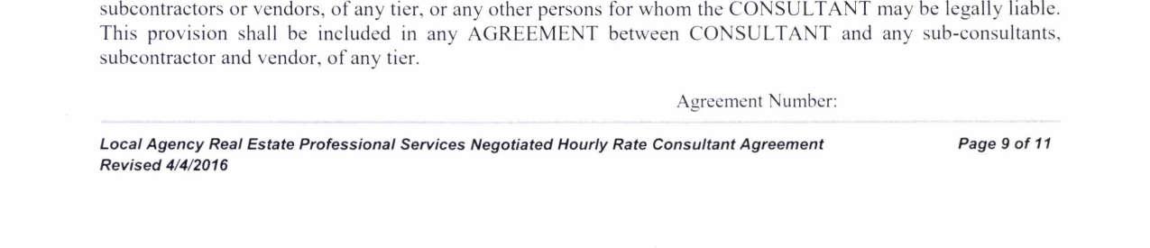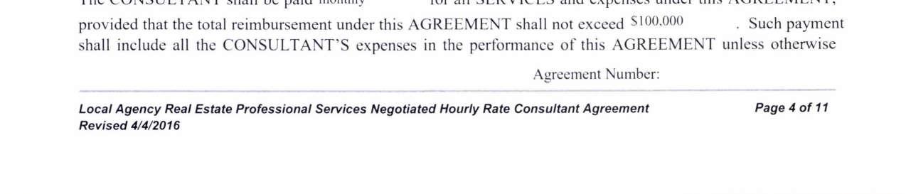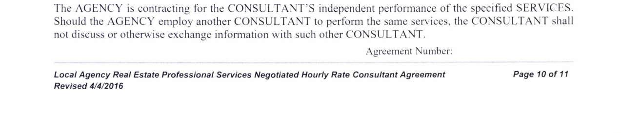 9. Local Agency Real Estate Professional Services Agreement with Universal Field Services to provide services pertaining to real estate acquisition for all property types that conform with federal and agency standards. The total compensation shall not exceed $100,000 shall be in effect until December 31, 2025, unless otherwise terminated.