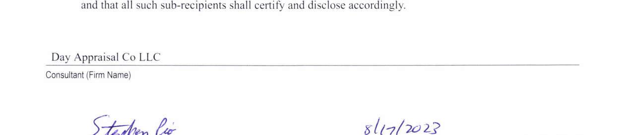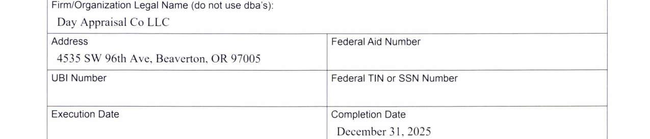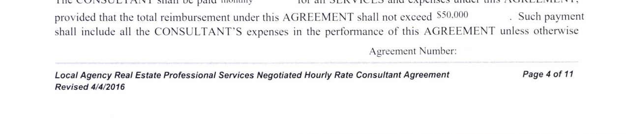 7. Local Agency Real Estate Professional Services Agreement with Day Appraisal Company LLC to provide services pertaining to real estate appraisals and appraisal reviews for all property types that conform with federal and agency standards. The total compensation shall not exceed $50,000 and shall be in effect until December 31, 2025, unless otherwise terminated.