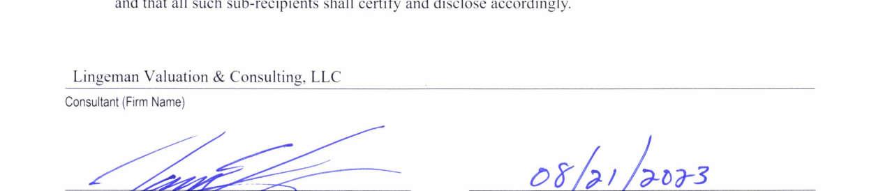 8. Local Agency Real Estate Professional Services Agreement with Lingeman Valuation & Consulting, LLC to provide services pertaining to real estate appraisals and appraisal reviews for all property types that conform with federal and agency standards. The total compensation shall not exceed $50,000 and shall be in effect until December 31, 2025, unless otherwise terminated.