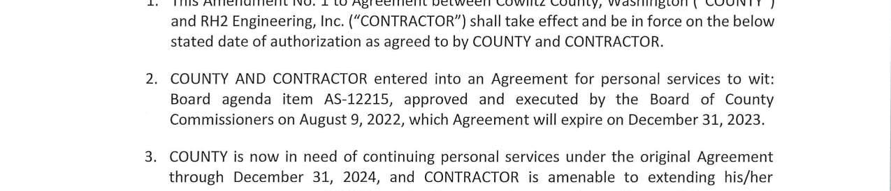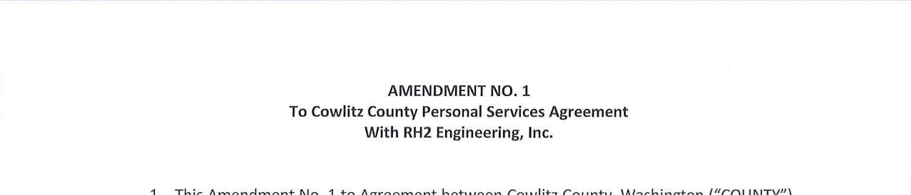 16. Amendment No. 1 to the Professional Services Agreement with RH2 Engineering, Inc., for the design of a Raw Water Reservoir as Phase 2 of the Ryderwood Water Source Project. This will increase the amount of the agreement by $211,730 for a total of $261,730.