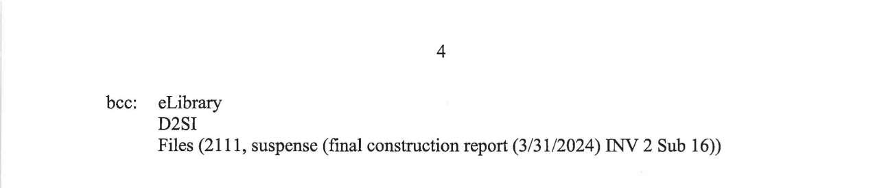 11. Completion Letter to Fire Systems West for the replacement of fittings and sprinkler heads at the Cowlitz County Event Center Indoor Arena. The final project amount is $61,071.33 including Washington State sales tax.
