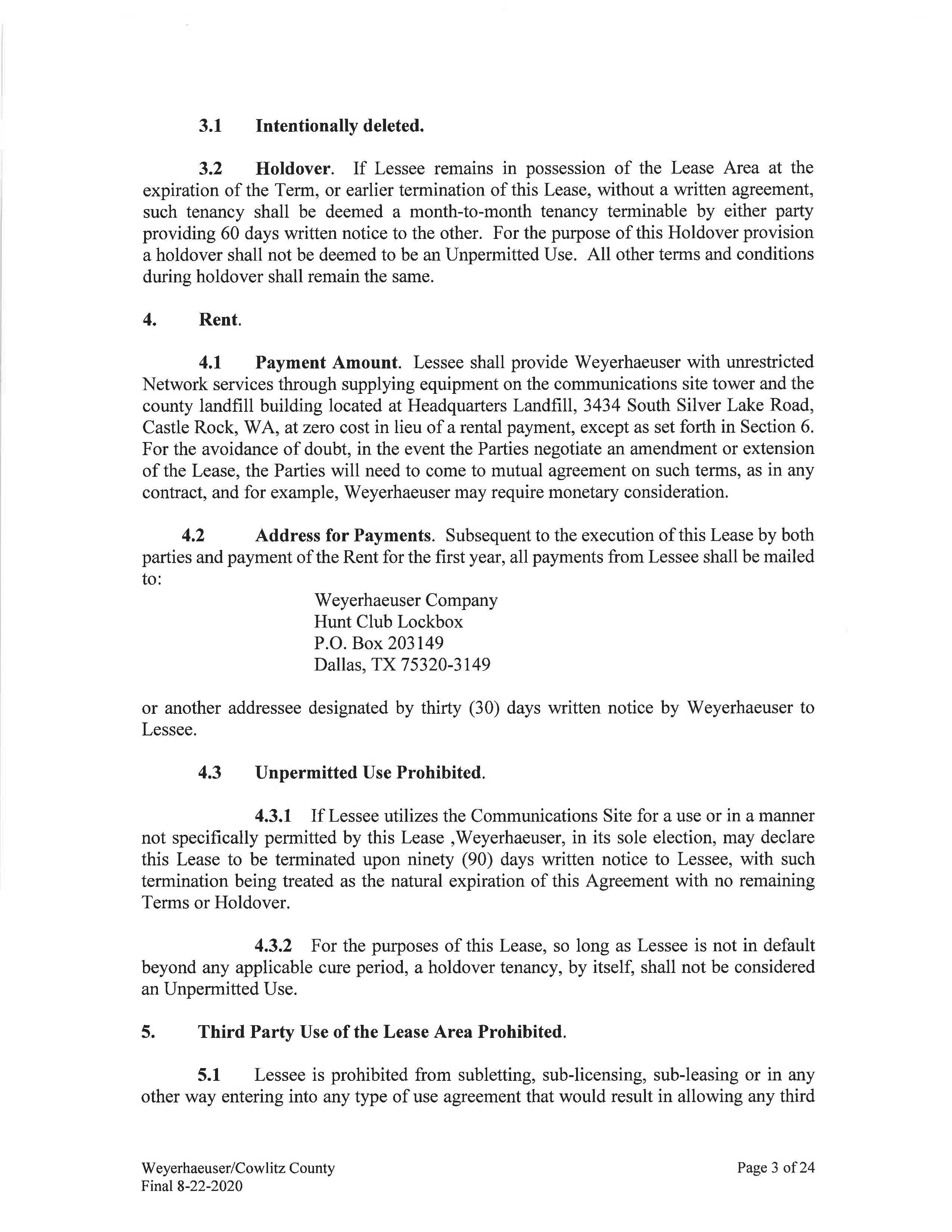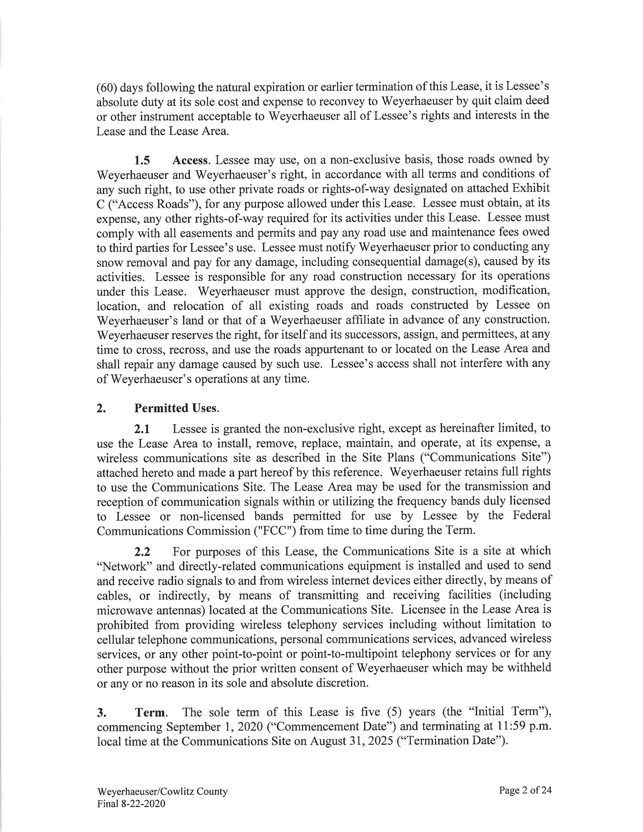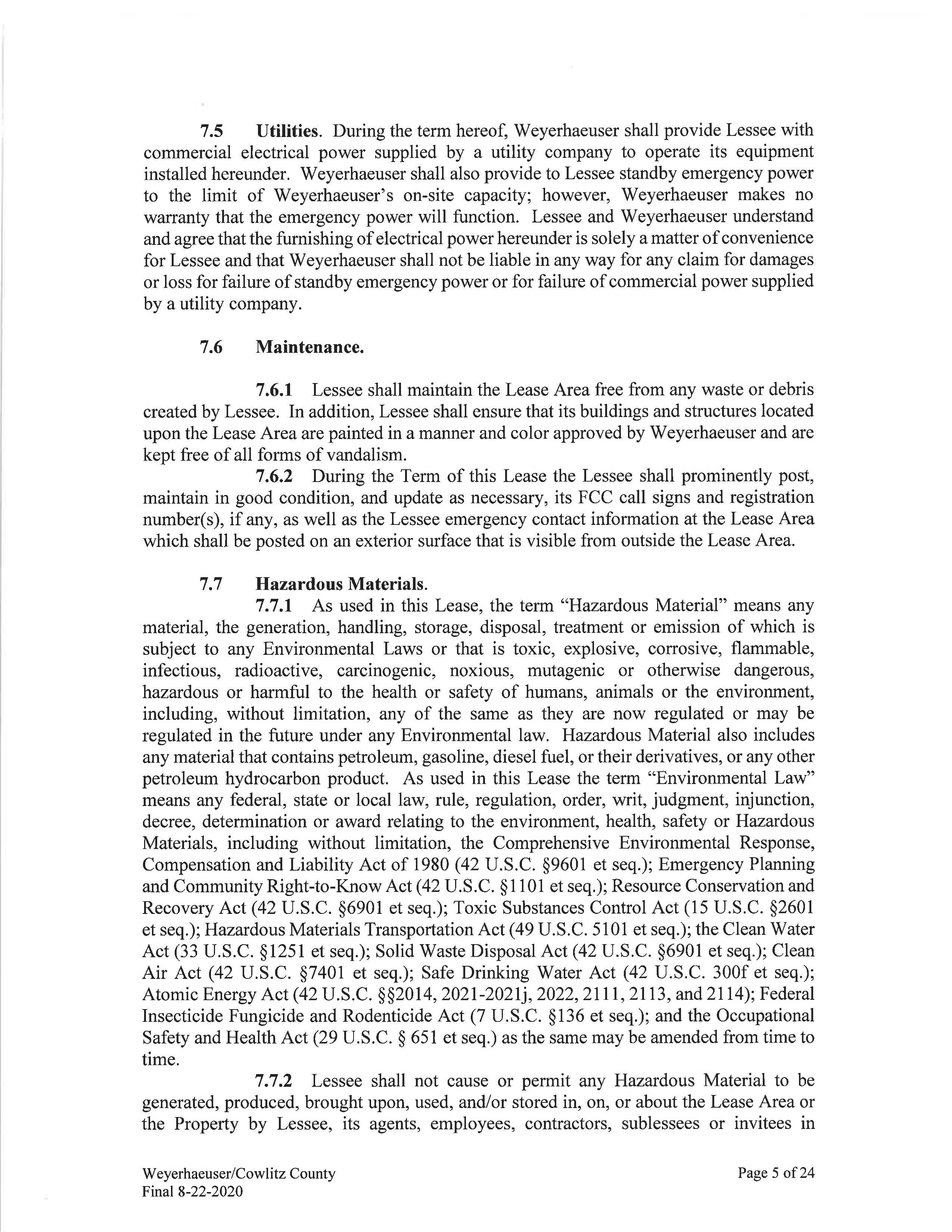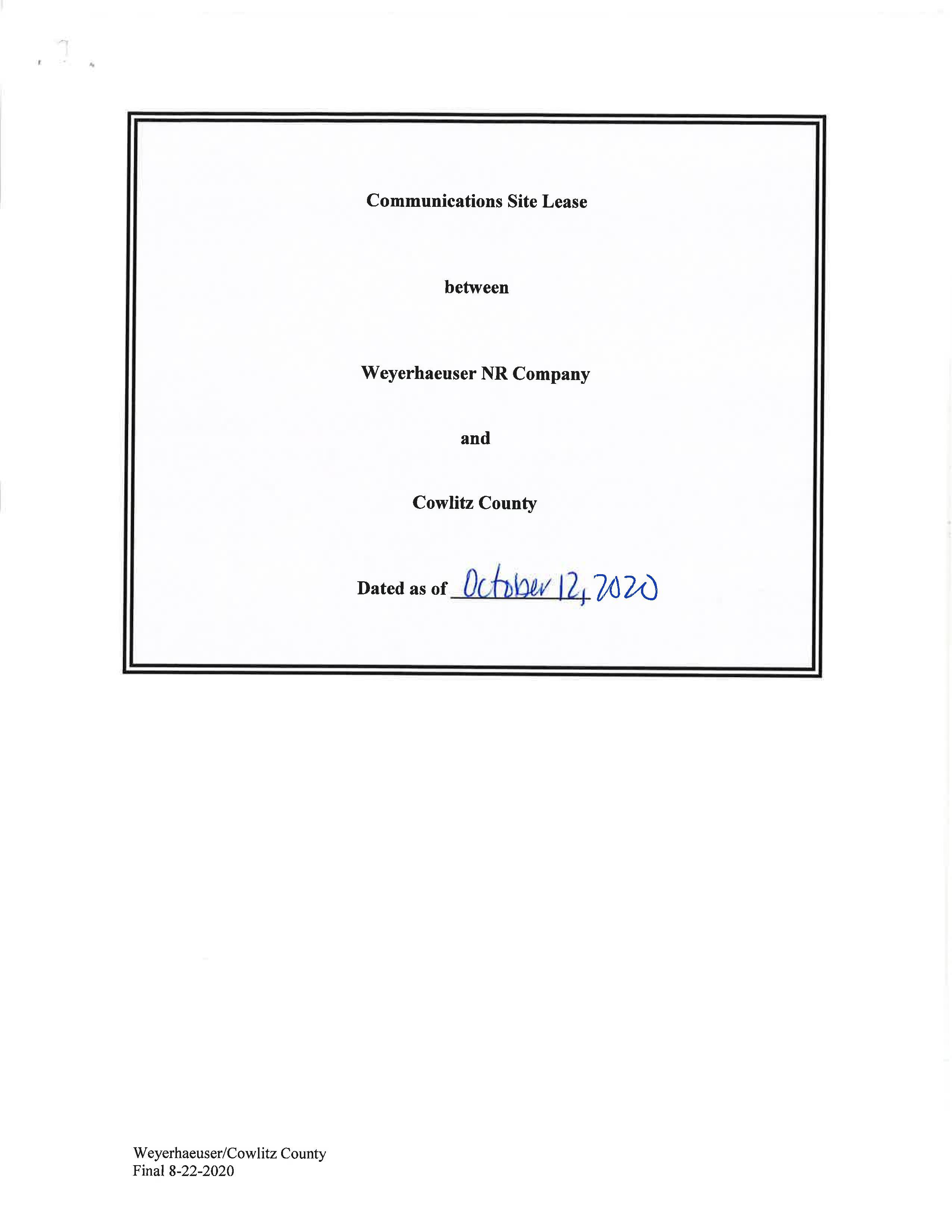 5. First Amendment to the Communications Site Lease between Weyerhaeuser Company to allow access to Weyerhaeuser's 199’ ROHN 45 Tower for a Point-to-Point Wireless Network System to improve internet speeds at the Headquarters Landfill and Authorize the Chairman to Execute the Document. (14324)