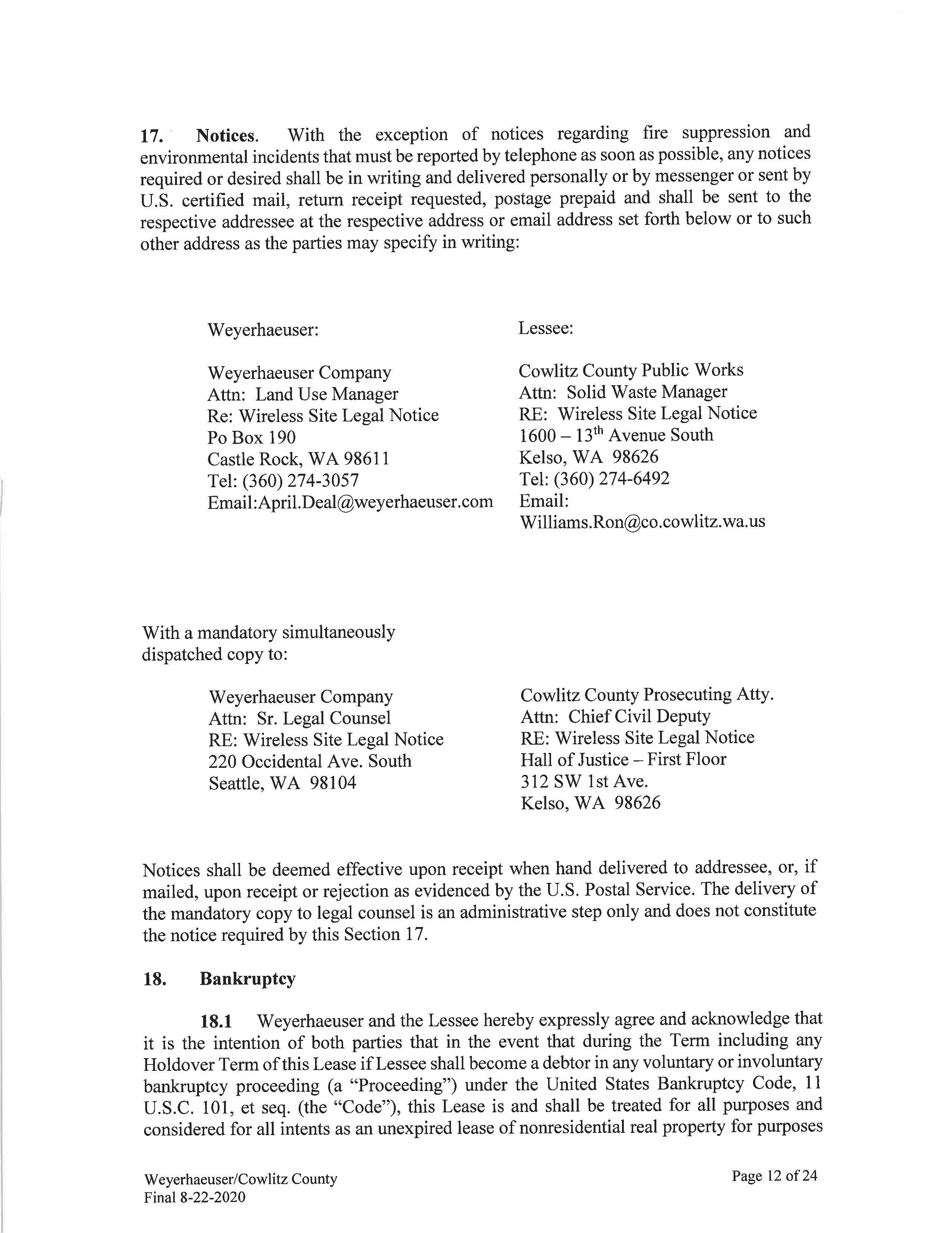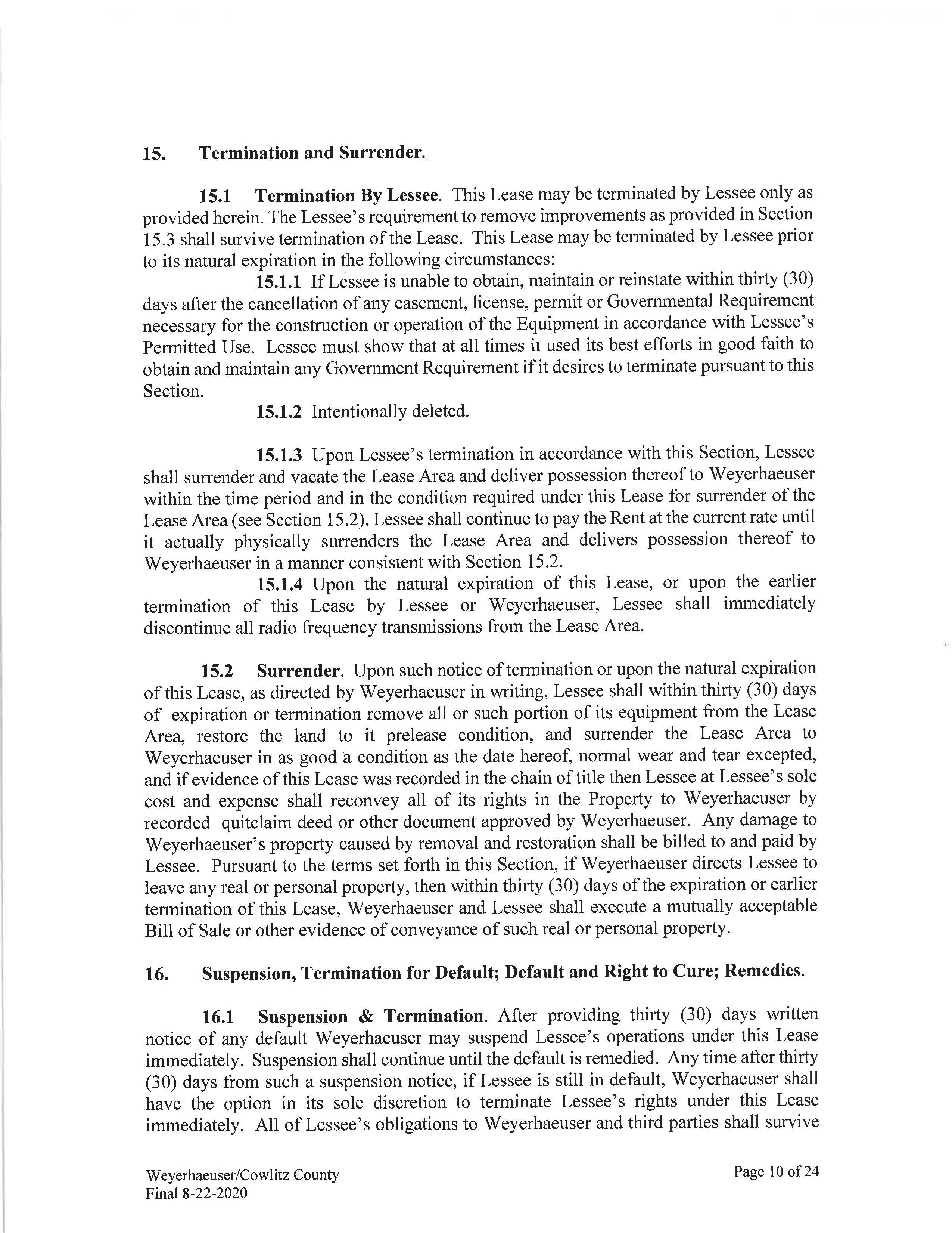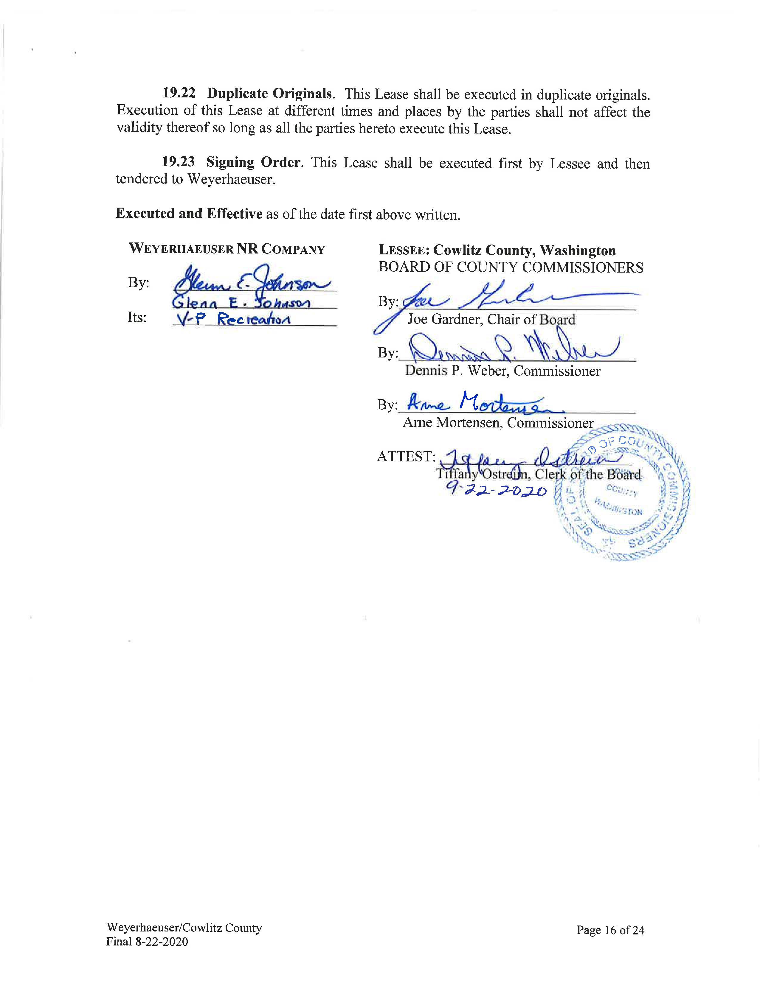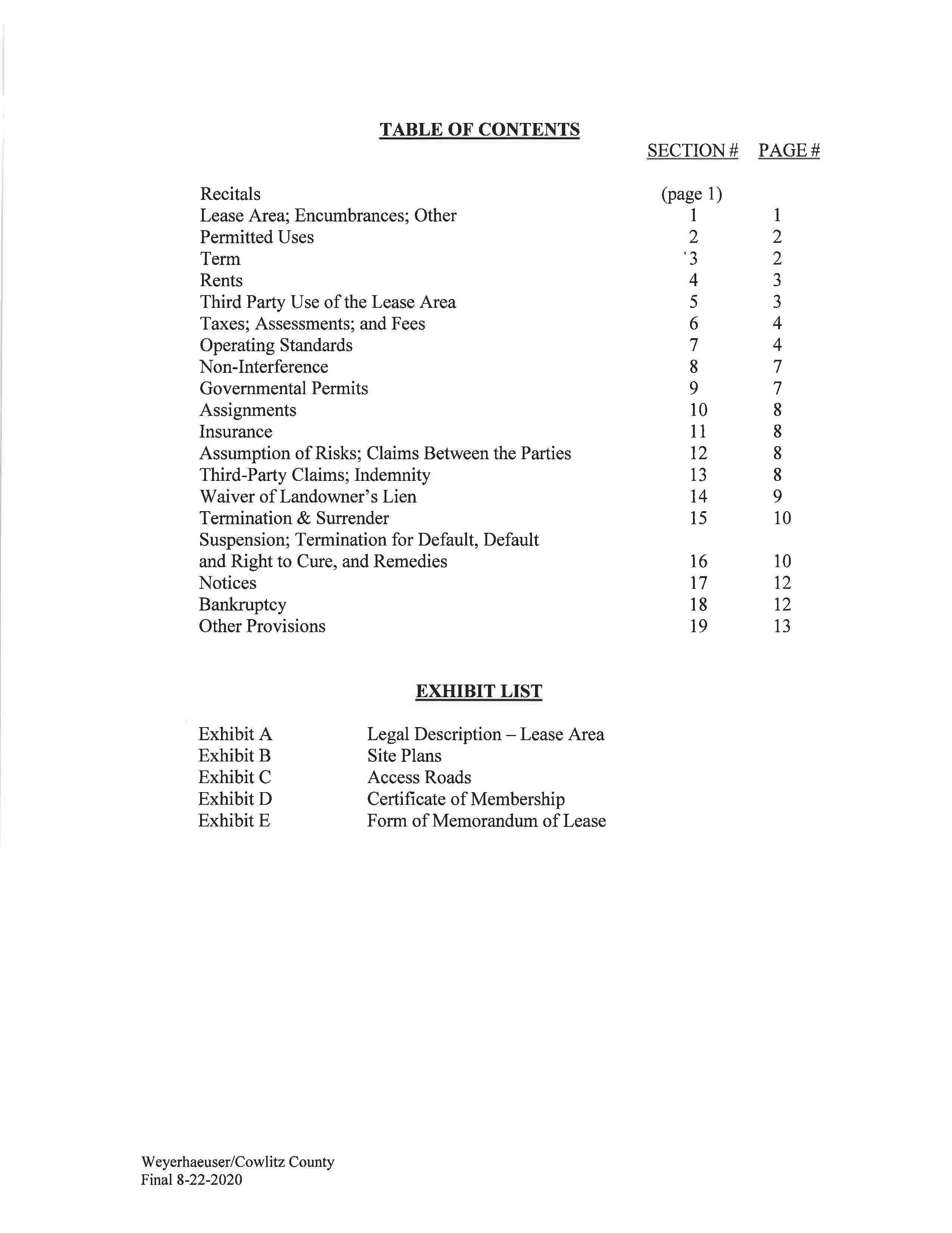 5. First Amendment to the Communications Site Lease between Weyerhaeuser Company to allow access to Weyerhaeuser's 199’ ROHN 45 Tower for a Point-to-Point Wireless Network System to improve internet speeds at the Headquarters Landfill and Authorize the Chairman to Execute the Document. (14324)