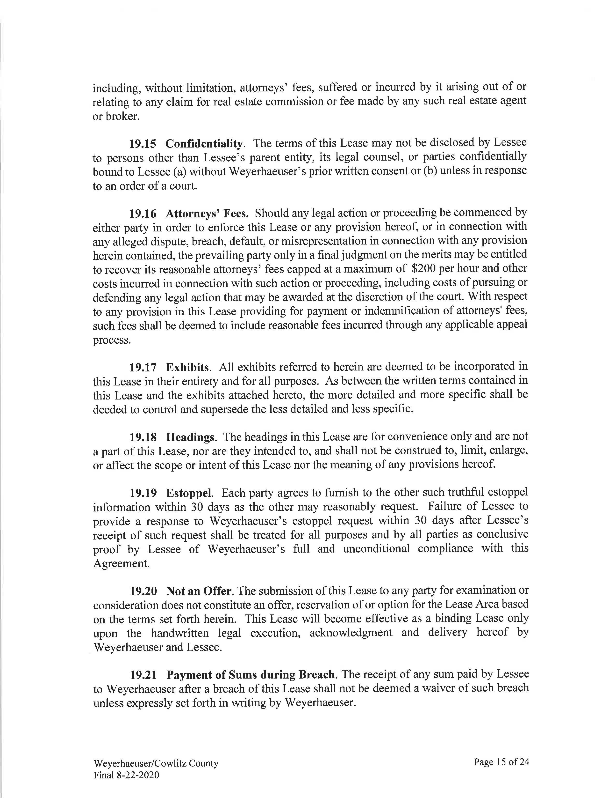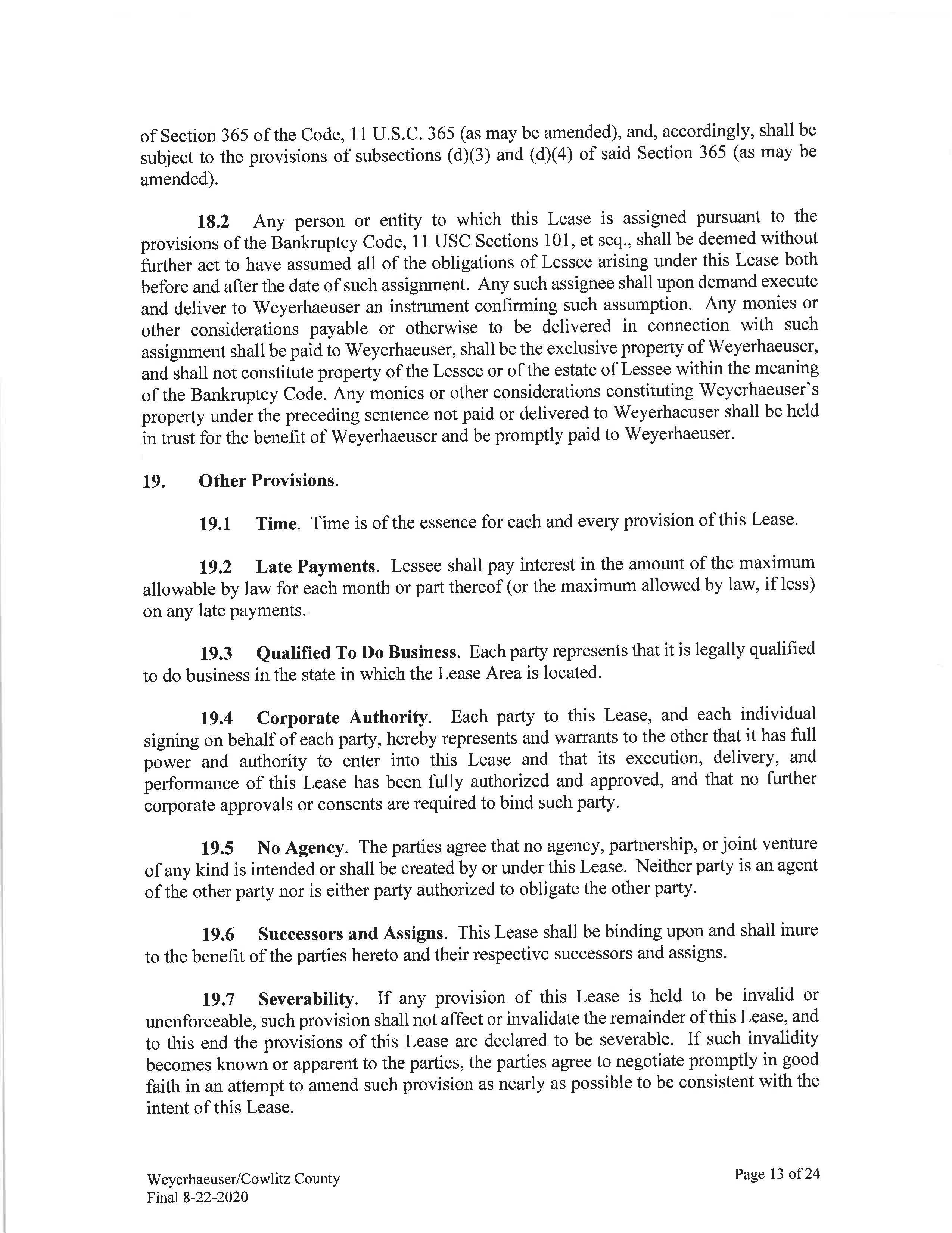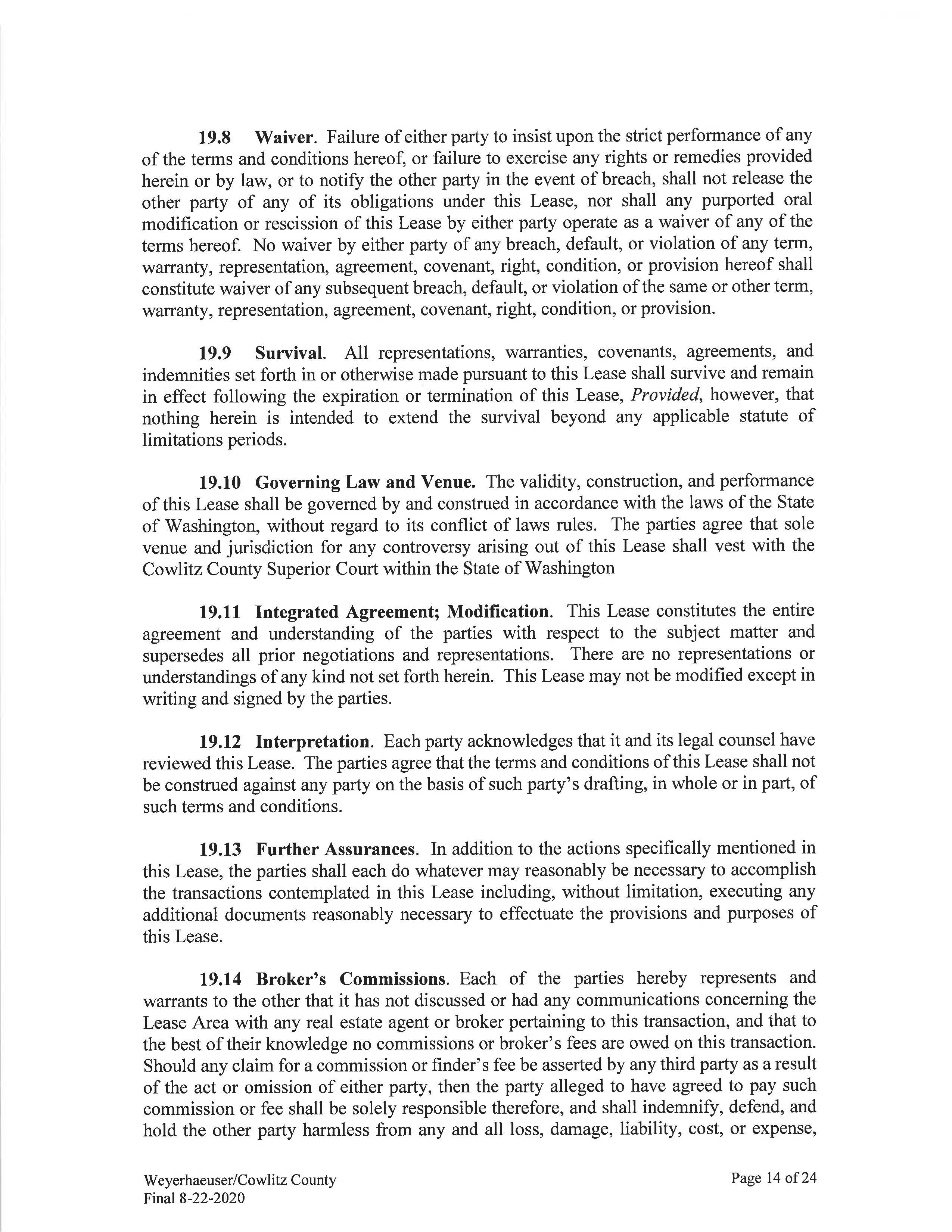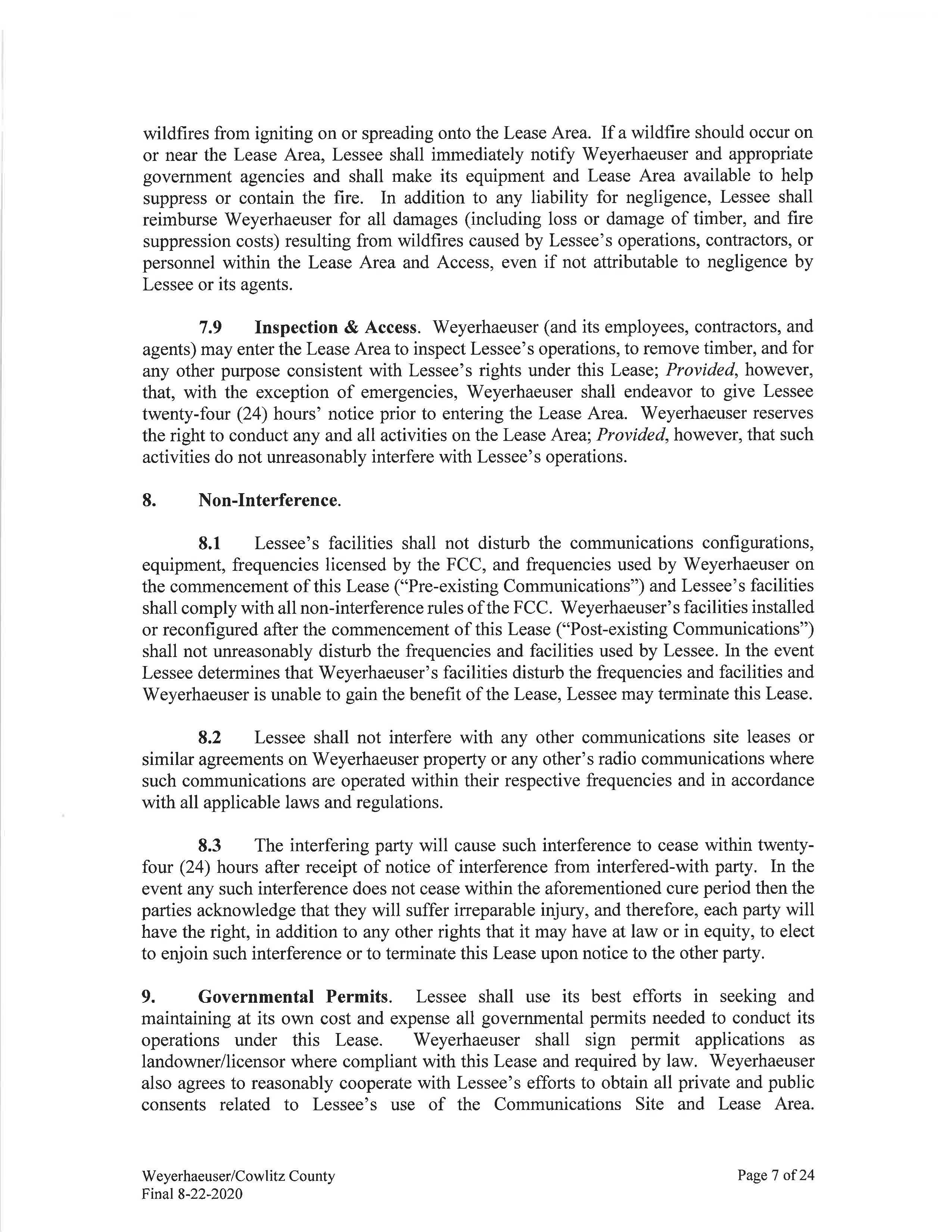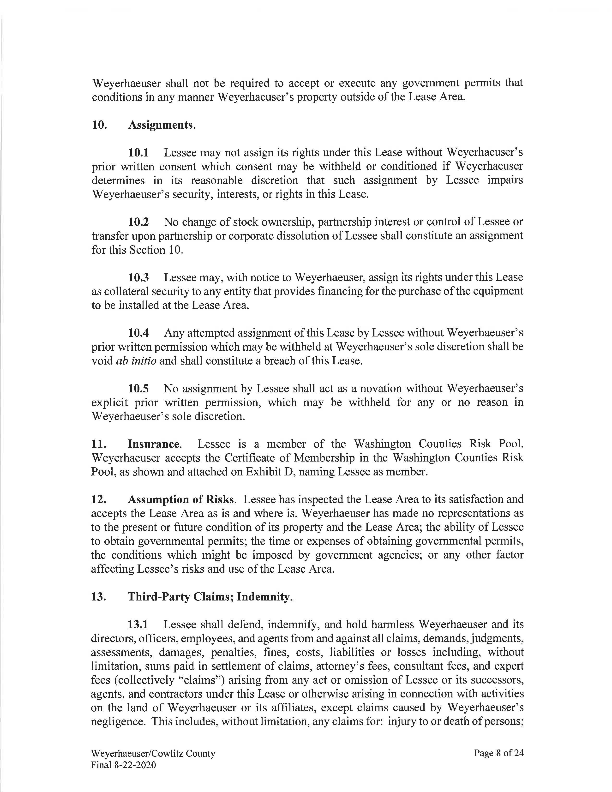 5. First Amendment to the Communications Site Lease between Weyerhaeuser Company to allow access to Weyerhaeuser's 199’ ROHN 45 Tower for a Point-to-Point Wireless Network System to improve internet speeds at the Headquarters Landfill and Authorize the Chairman to Execute the Document. (14324)