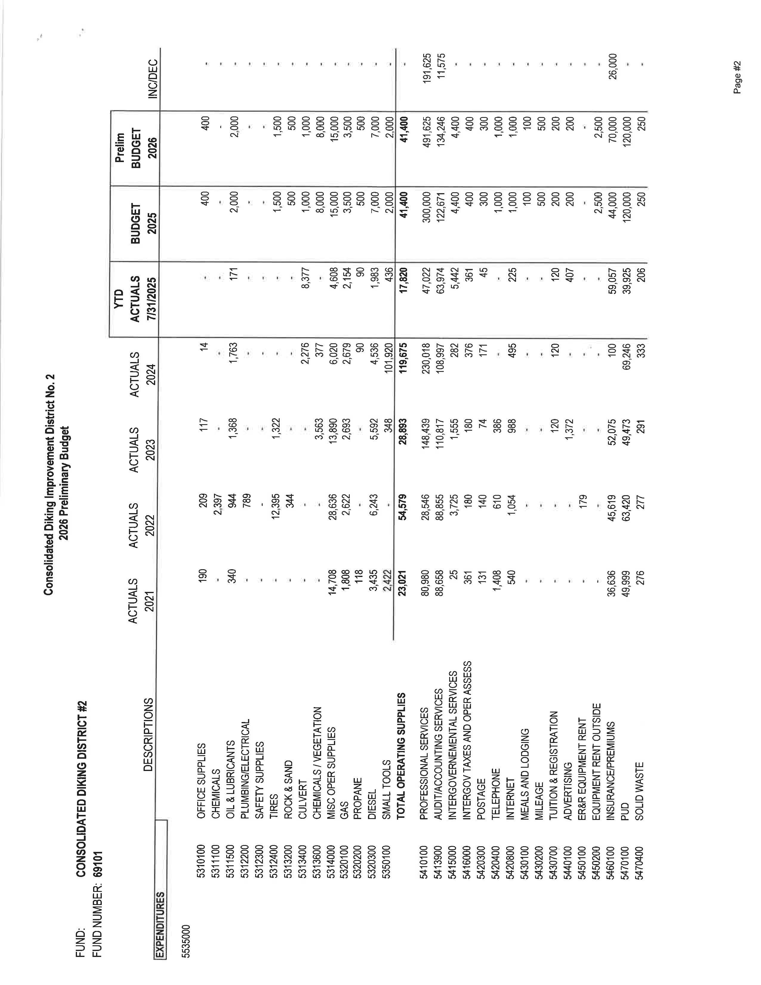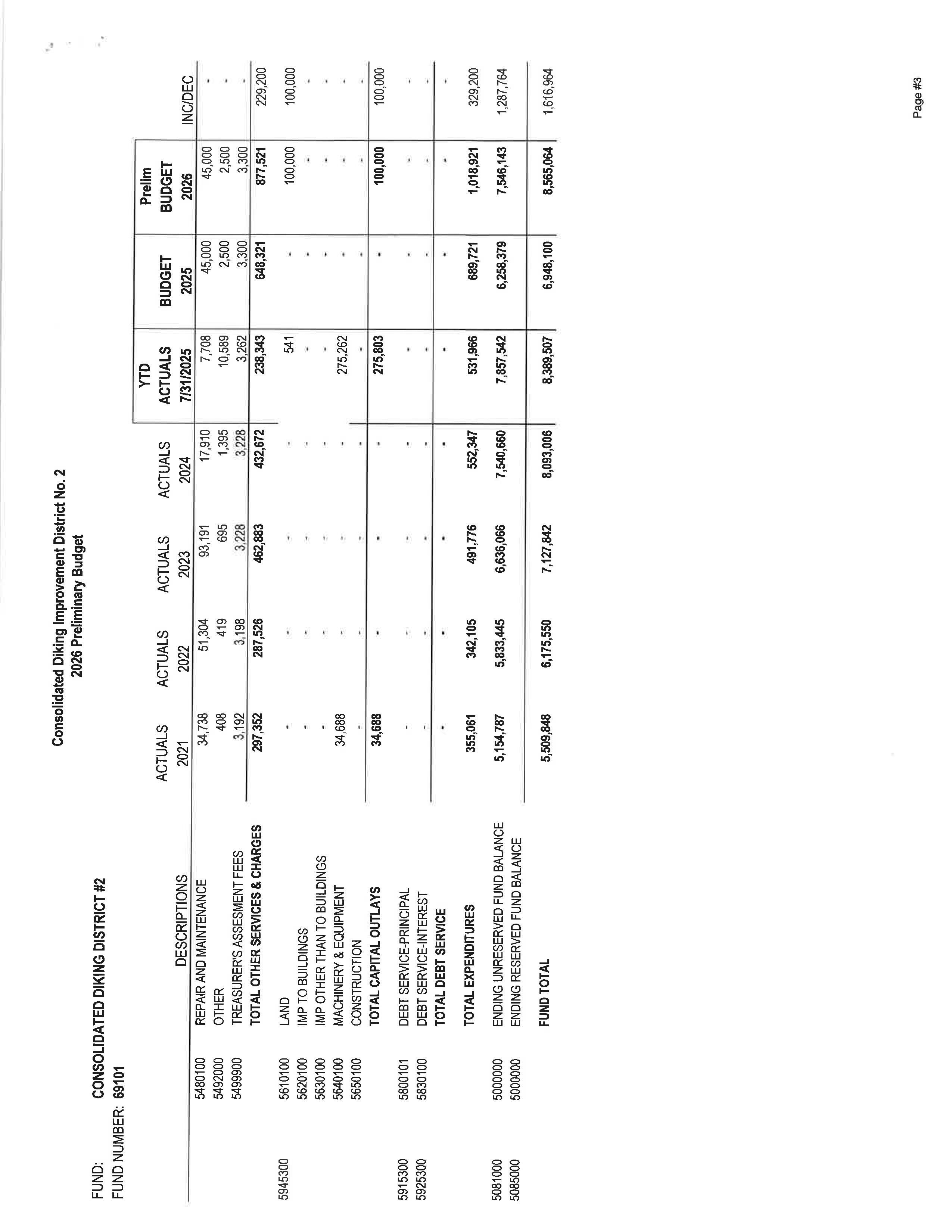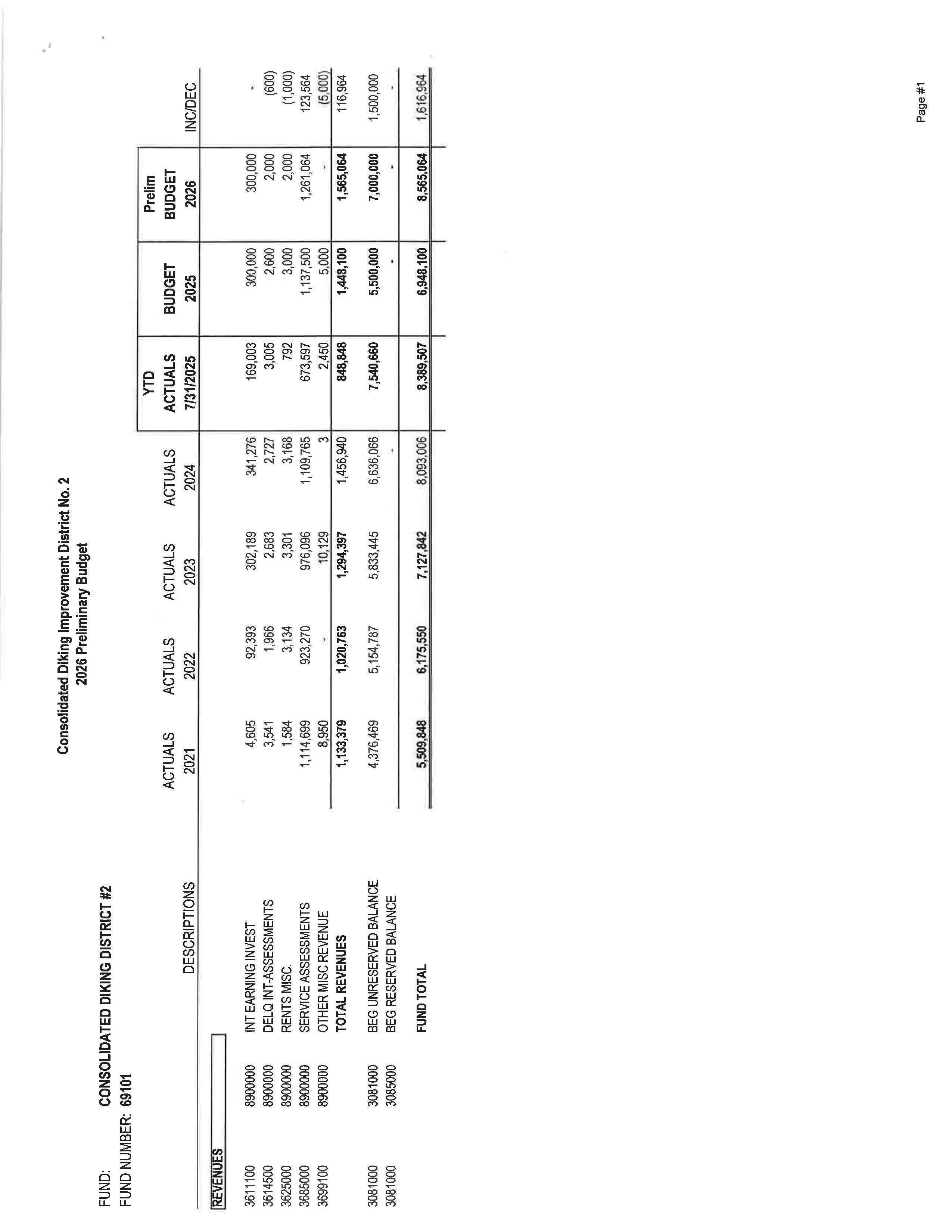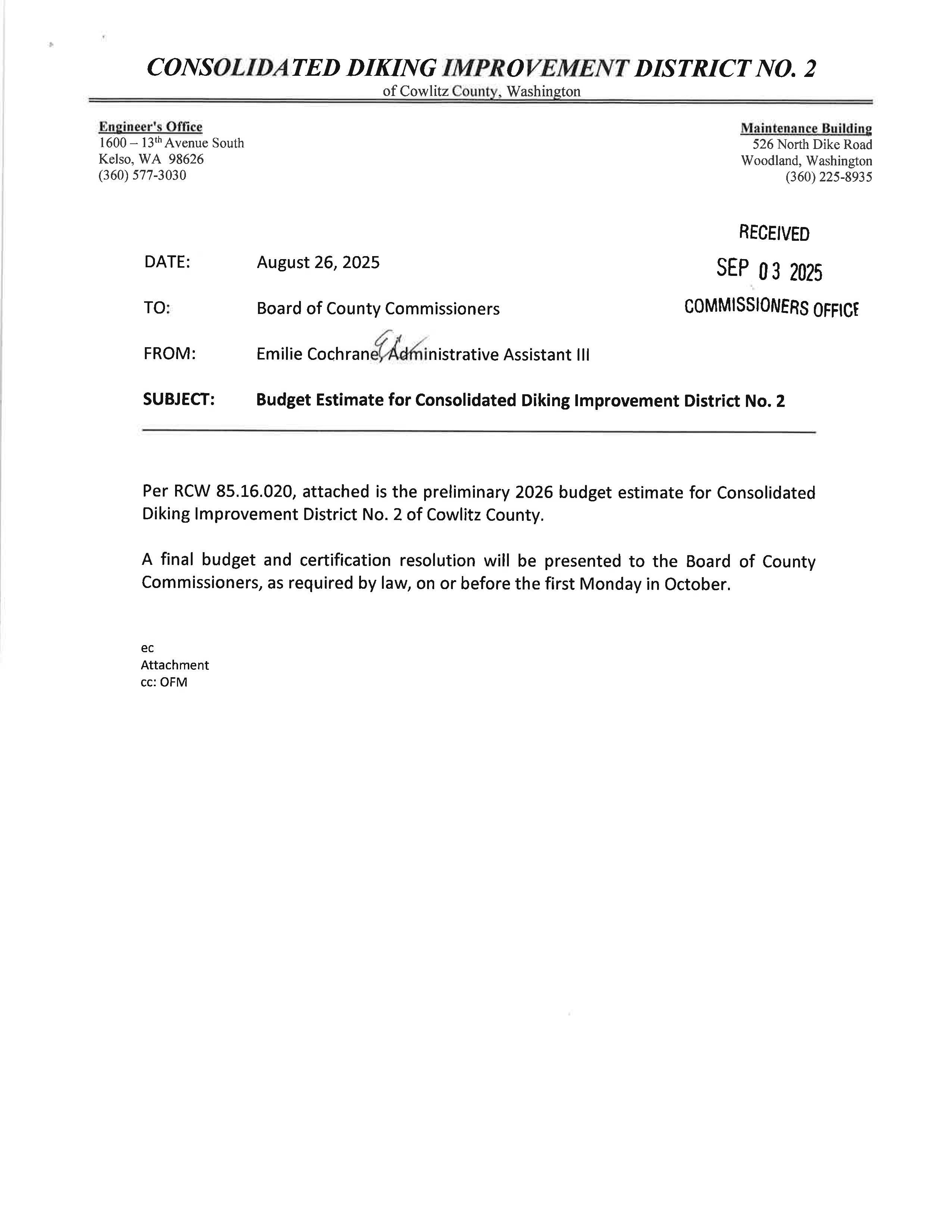 d. Memo dated 8/26/25 regarding 2026 Budget Estimate for Consolidated Diking Improvement District No. 2 of Cowlitz County. (14332)