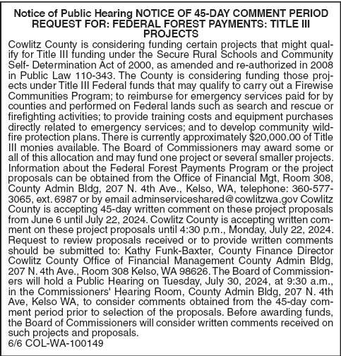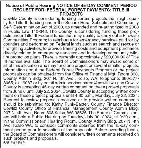 9. Federal Forest Title III Funds Updates