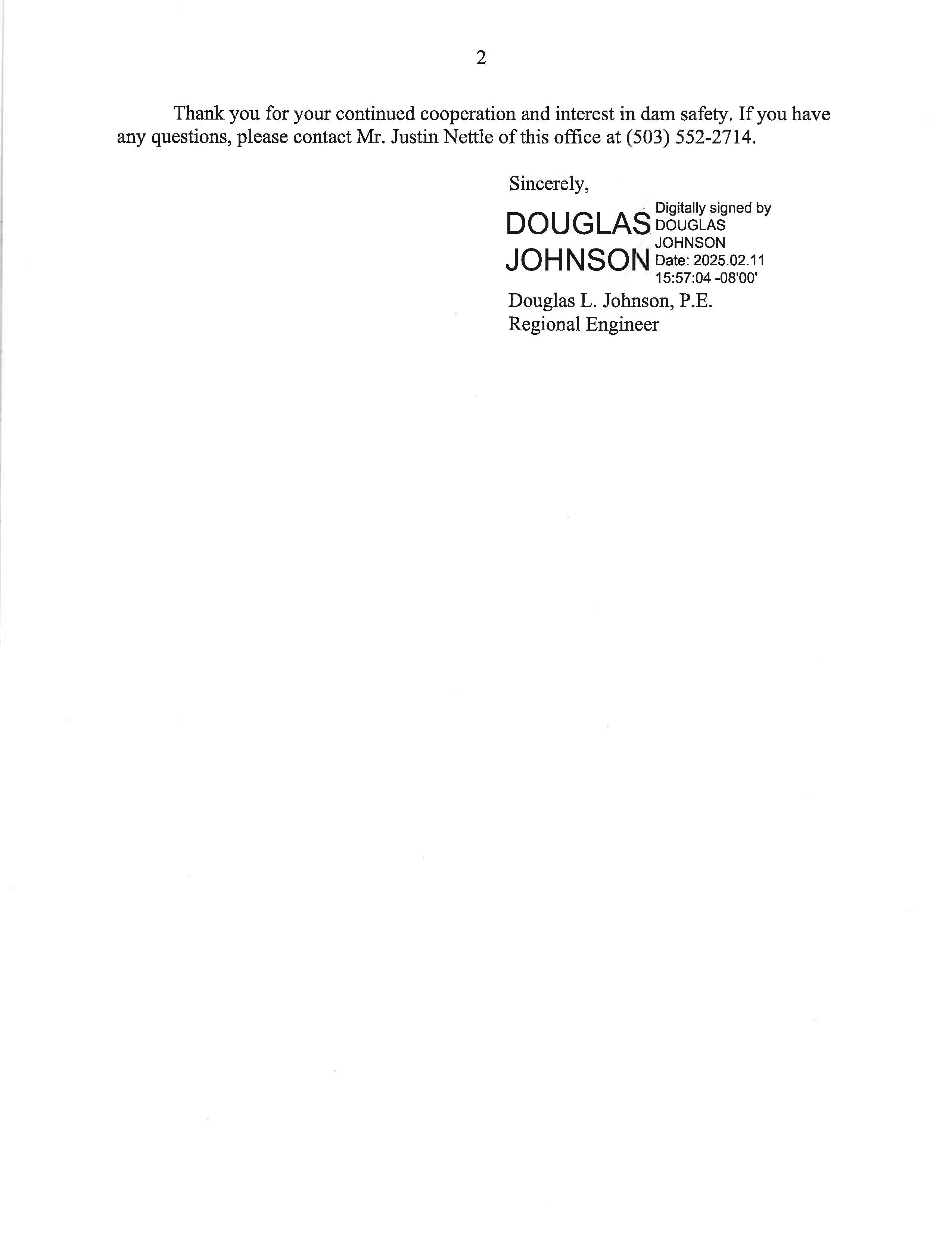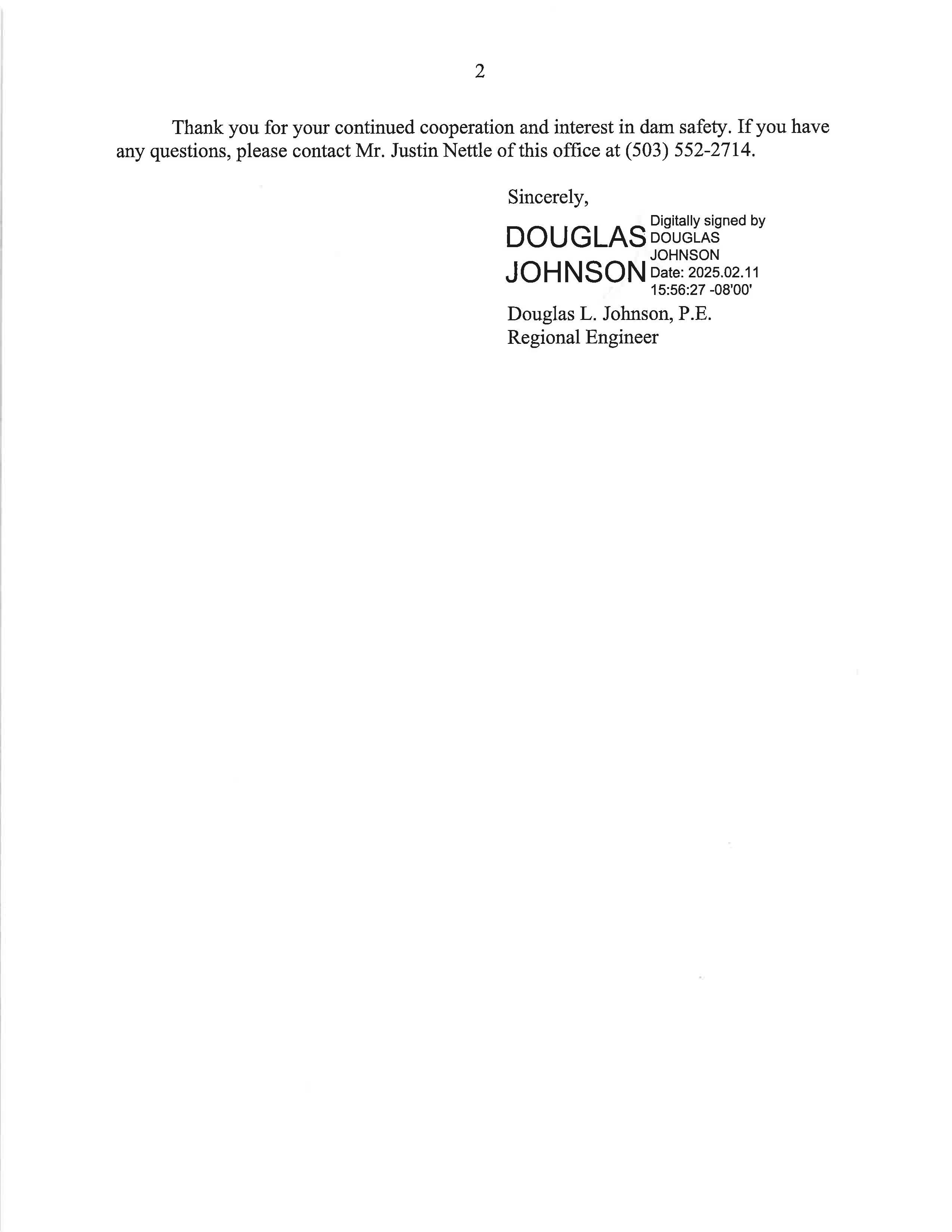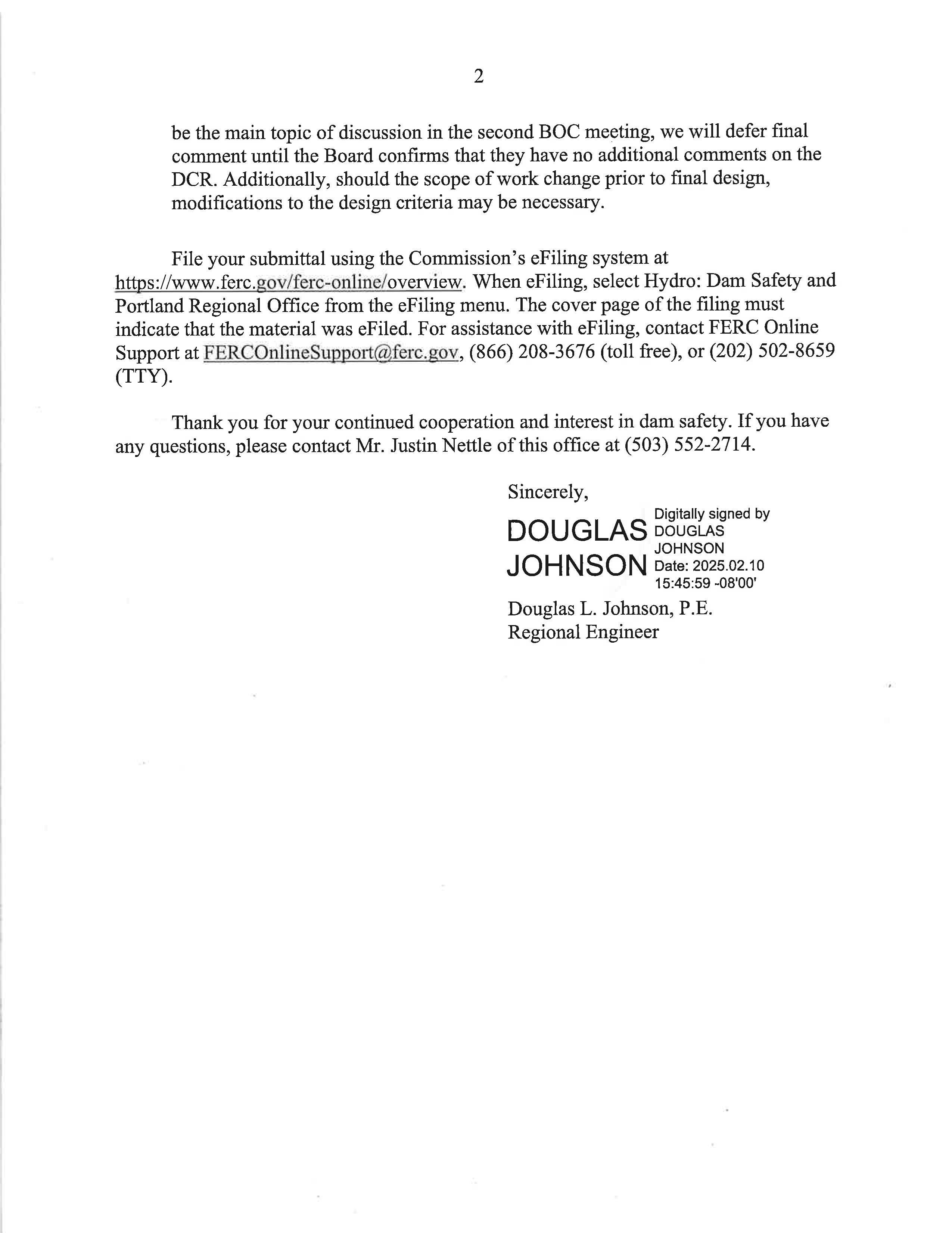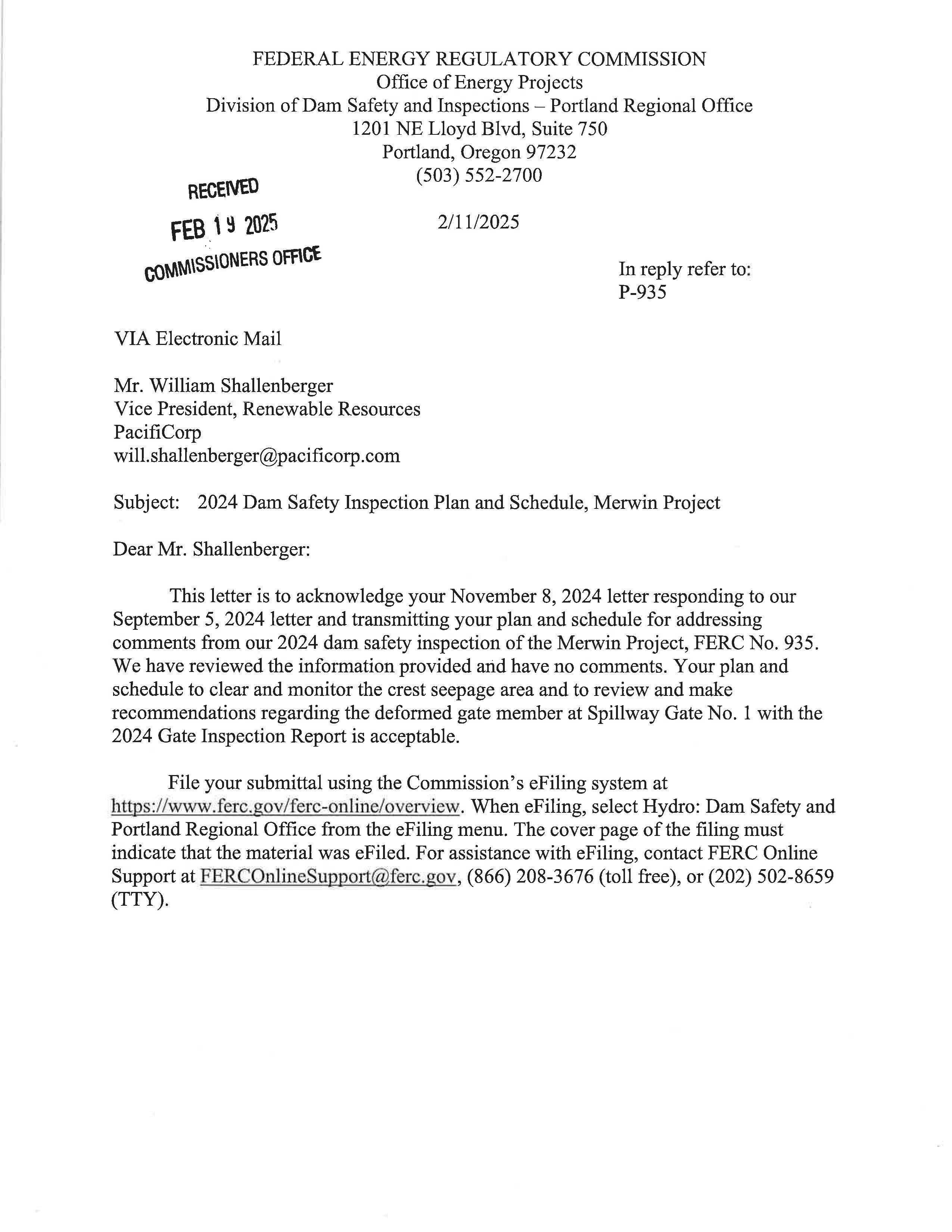 a. Federal Energy Regulatory Commission (FERC) Notice dated 2/10/2025 regarding the 2024 Dam Safety Inspection Plan and Schedule, Merwin Project. (14036)