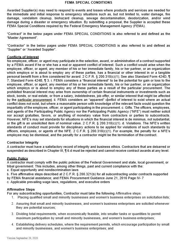 i. Past Performance: An Offeror’s past performance and actions are relevant in determining whether or not the Offeror is likely to provide quality goods and services; the administrative aspects of performance; the Offeror’s history of reasonable and cooperative behavior and commitment to customer satisfaction; and generally, the Offeror’s businesslike concern for the interests of the customer may be taken into consideration when evaluating proposals, although not specifically mentioned in the RFP.