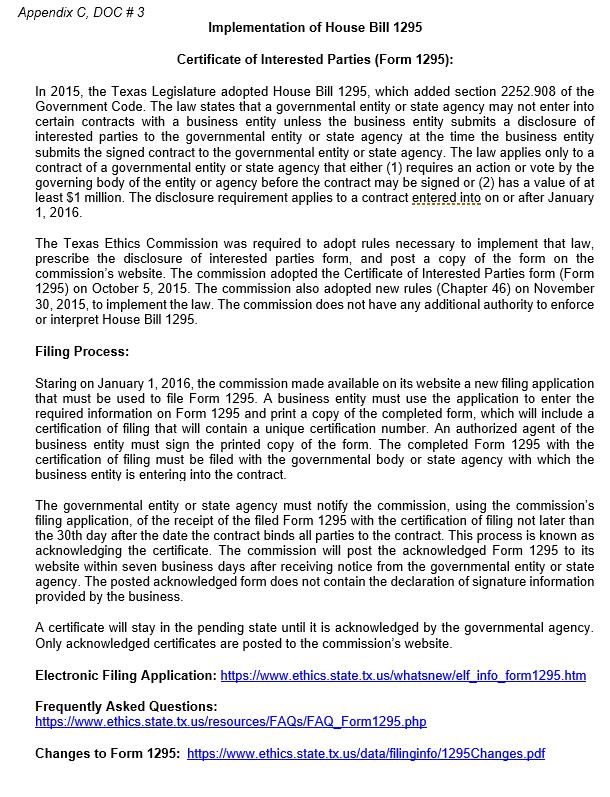 Document #3: Implementation of House Bill 1295 Certificate of Interested Parties (Form 1295)