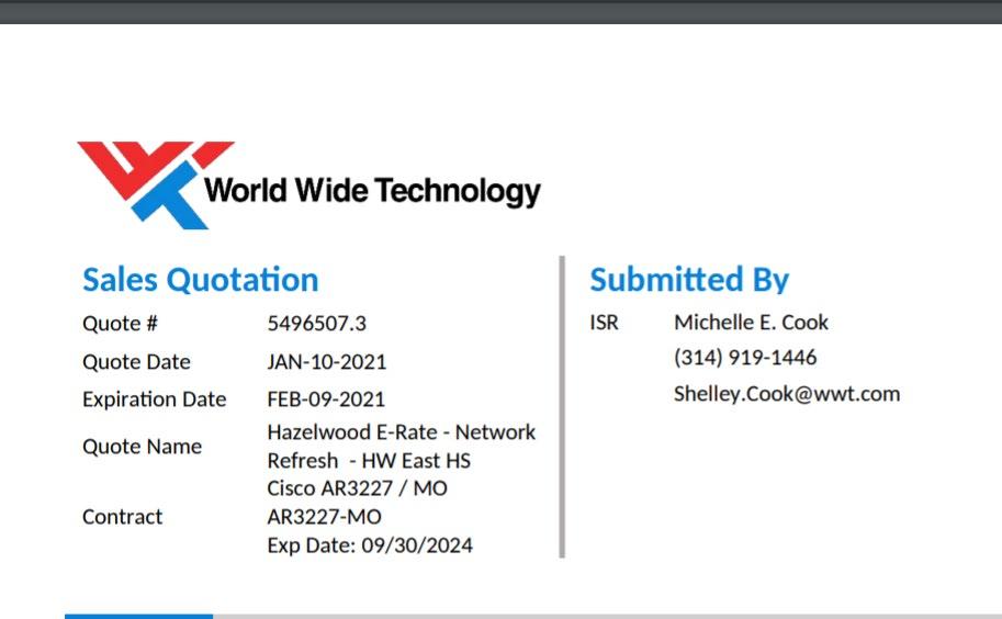 assists in providing available Cisco certified training, when requested by the state. WWT provides SMARTnet maintenance services for hardware and software on-site in accordance with Cisco’s coverage areas within the State of Missouri (both during and after the warranty). WWT provides advanced parts replacement not involving on-site personnel.