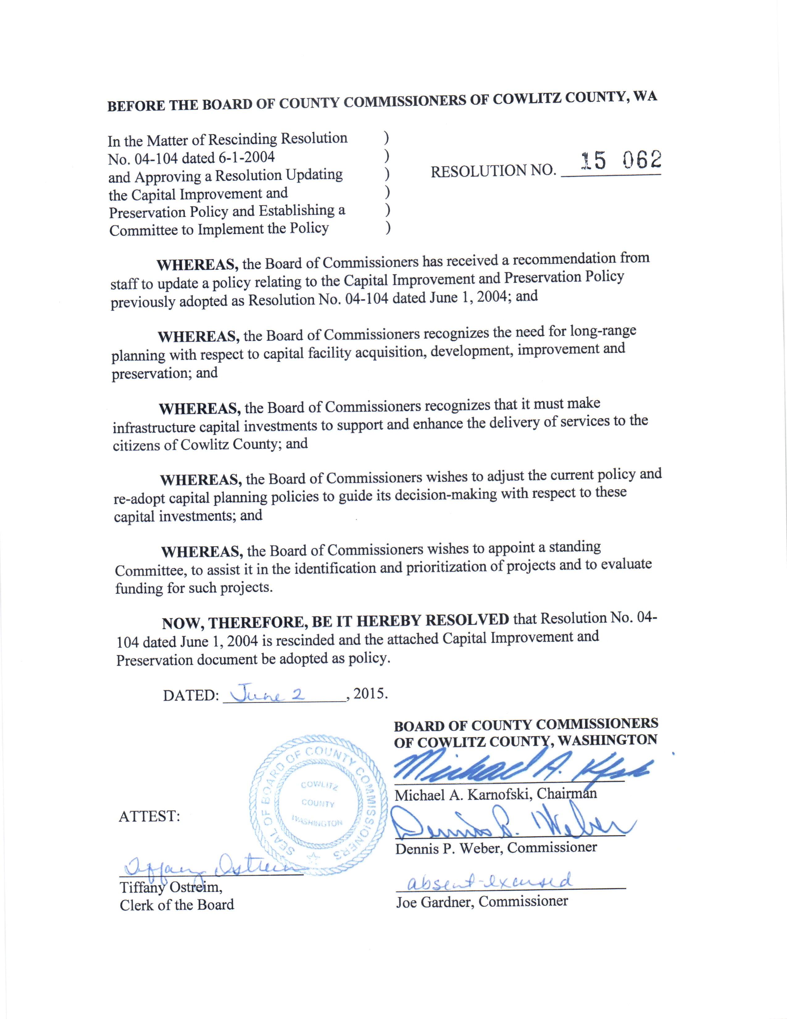 2. Resolution Updating the Capital improvement and Preservation Policy. (14035) Board Correspondence