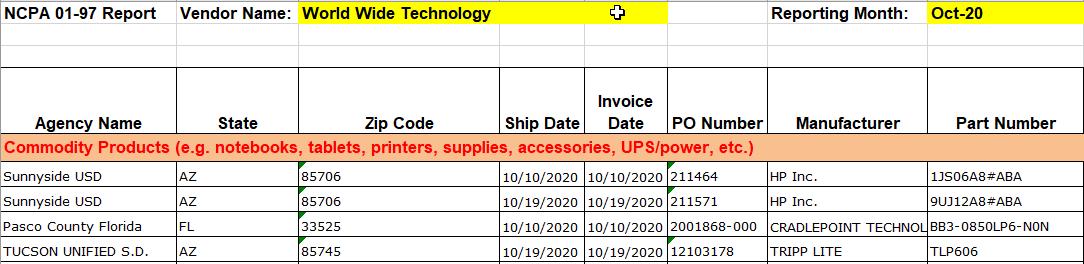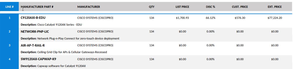 As noted in Section 2.0 Products/Pricing WWT is offering all products we have access to for the OMNIA Partners contract. A sample listing of our top manufacturers can be found here.