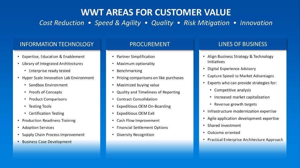 WWT’s high level Value Add proposition for Region 4 ESC, OMNIA Partners, and Participating Public Agencies will benefit from: