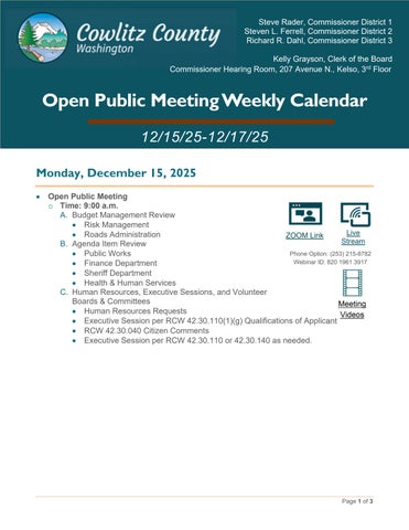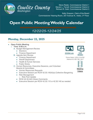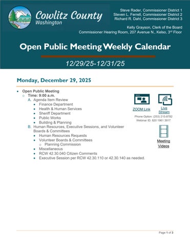 2025 Open Public Meeting Weekly Calendar/Video