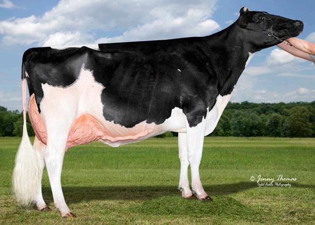 PEDIGREE INFORMATION: All production, classification, type and production summaries are current. Only official DHI or DHIR records are used in pedigrees contained herein. All records, except records in progress, are shown on true protein scale. Any production or classifica tion records followed by a quotation mark (“) have been supplied by the seller or consignor. * indicates undesirable recessive carrier; *DP for dumps, *BL for blads, *CV for complex vertebral malformation, *BY for brachyspina and so forth.