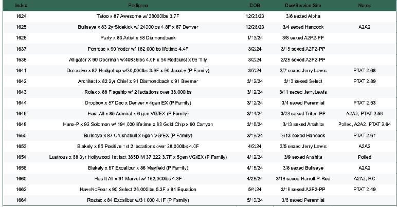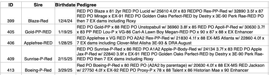 This pertains to choices that are due throughout 2026! In addition there are choices of calves that are already on the ground, but are younger than the standard four months of age.