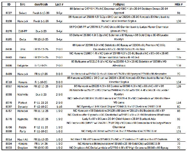 Special Note: This sale will present the consignments in a multi-media format at the sale and online. At the sale, video and photos will be displayed in a Powerpoint presentation while we will be conducting a traditional auction. The video on each lot can be viewed when you look at the PA Holstein or Western PA Convention Sale Facebook Page! The consignors welcome your visit to view the lots selling prior to the sale.