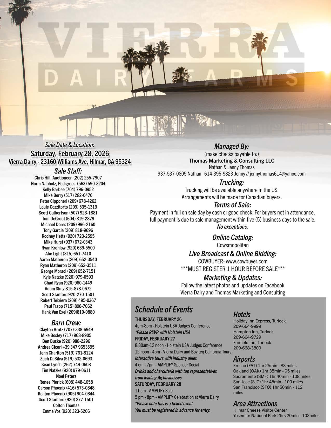 PEDIGREE INFORMATION: All production, classification, type and production summaries are current. Only information recorded on Holstein Association USA pedigrees is used. Any production or classification records supplied by the seller or consignor will be properly identified as provided by owner. Records in progress are identified as such.