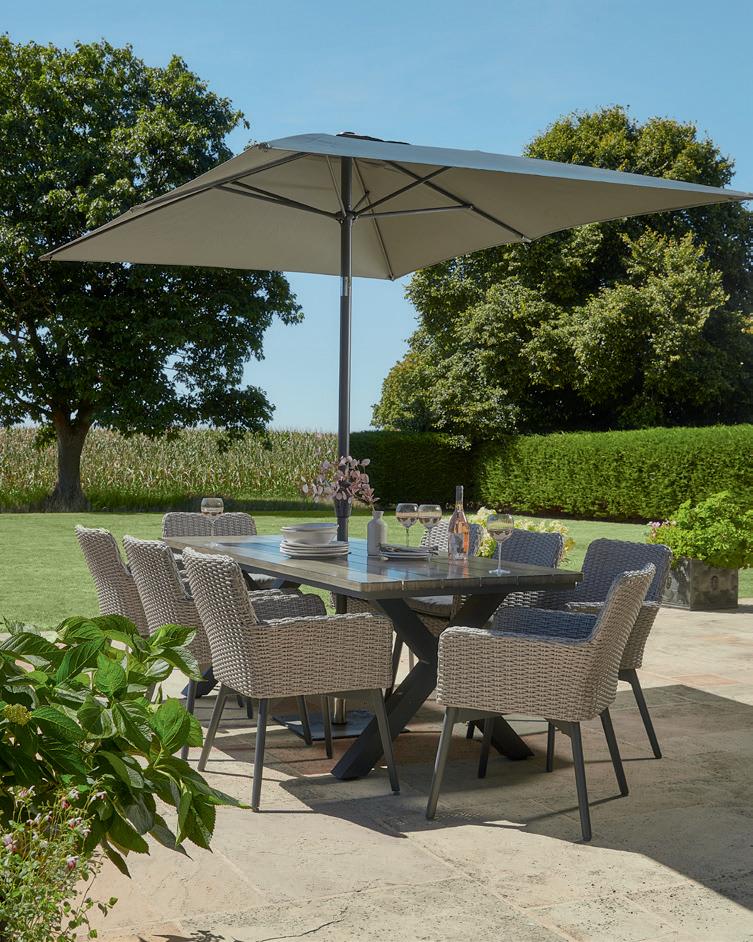 1. Box Carriage Wall Light £85 1334345 2. Extendable Bulb Festoon Lights £50 1327658 3. Hatfield Curved Modular Dining Set with Firepit £3,775 1534155 4. Industrial Outdoor Window Mirror £225 1425038 5. Fire Storage Brazier £395 1532279 6. Indoor Outdoor Double Hanging Chair – Grey £795 1521367 7. Cage Swan Neck Wall Light £95 1334311 8. Industrial Outdoor Panelled Window £295 1434124