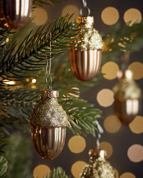 4. Gold Dinner Candle Holder – Small £25 1131150 5. LED Church Candle – Large £11.50 1035248 Small £10.50 1035247 6. Golden Eucalyptus Garland £20 1035015 7. Gisella Mirror £495 1433949 8. Vintage Style String Lights – Pastel Mix £60 1035008 9. Three Feathered Bird Clips £22 1035014 10. Twelve Glittered Glass Acorns £10.50 1035240 11. Six Glittered Star Glass Baubles – Blush £25 1035284 12. Golden Glittered Ribbon £12.50 1035348 13. Forest Green Recycled Wrapping Paper – 10m £14.50 1035368 14. Three Large Magical Mushrooms £28