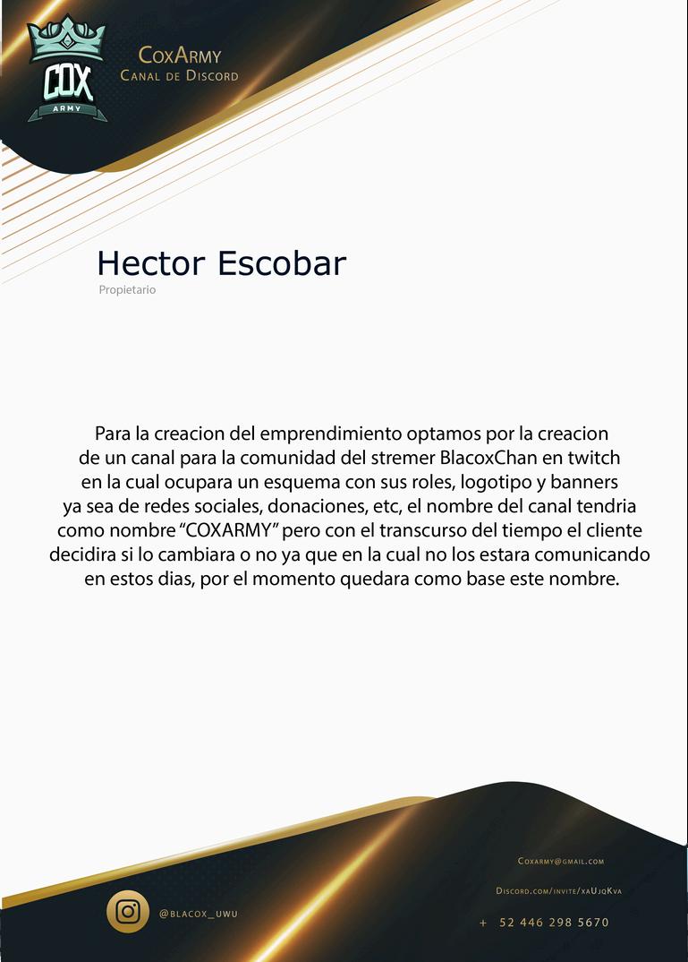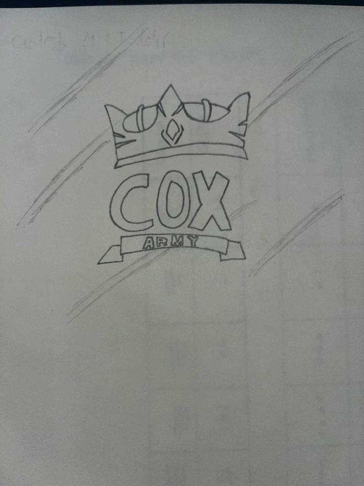 Nombre y Identidad: El nombre "COX" es prominente en el centro del logo, lo que sugiere que es el elemento principal de la identidad del grupo. La palabra "ARMY" debajo refuerza la idea de una comunidad o equipo unido y organizado. 1.