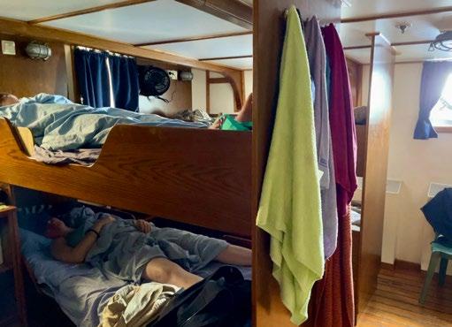 mellom 0812 og 2024. Ulempen deres, var at hengekøyen deres måtte pakkes bort før 07.30 fordi forreste banjer ble brukt som spisesal og oppholdsrom. Søvnmangel kunne bli et problem. Jeg hadde ikke Zopiklone i satsen, men fikk flere tabletter av en medseiler som kunne deles ut til andre. Flere foretrakk å sove på benkene og det var lett å få sove der uten å falle ned på dørken fordi sjøen var rolig under hele overfarten.
