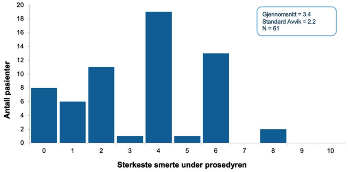 • Puls: Gjennomsnittlig økning på 3 slag per minutt observert