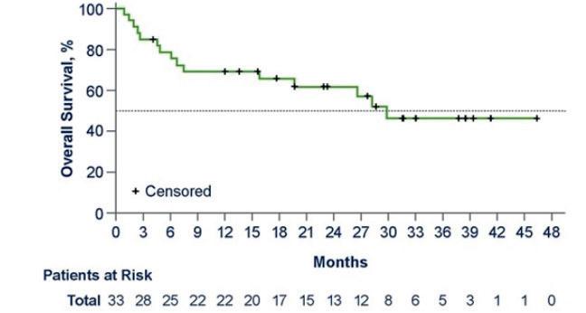 Brexu-cel er en autolog CD19 CAR-T celleterapi som er godkjent i USA for pasienter med tilbakefall/kjemorefratær B-ALL som er ≥ 26 år basert på resultatene av ZUMA-3 studien (Shah et al. Lancet 2021), N=55. På EHA ble 3 års data fra denne studien presentert. Median oppfølging var 39 mnd. For pasientene som var ≥ 26 år var 72% i CR/CRi og median OS var 34 mnd. Overlevelsen var lenger hos de som hadde fått færrest tidligere behandlingslinjer og hos de som ikke hadde fått blinatumomab, men forskjellene var ikke signifikante.